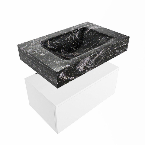 MONDIAZ ALAN - DLUX Badkamermeubelset - 70cm - onderkast - Talc - 1 lade - vrijhangende wastafel - wasbak midden - 1 kraangat - Lava