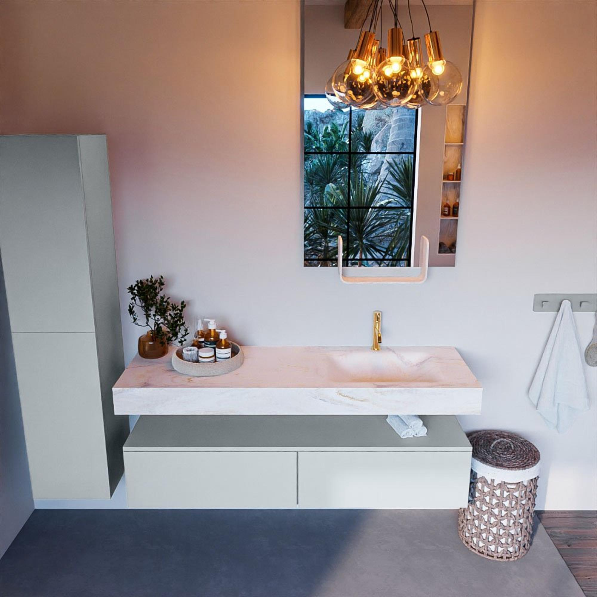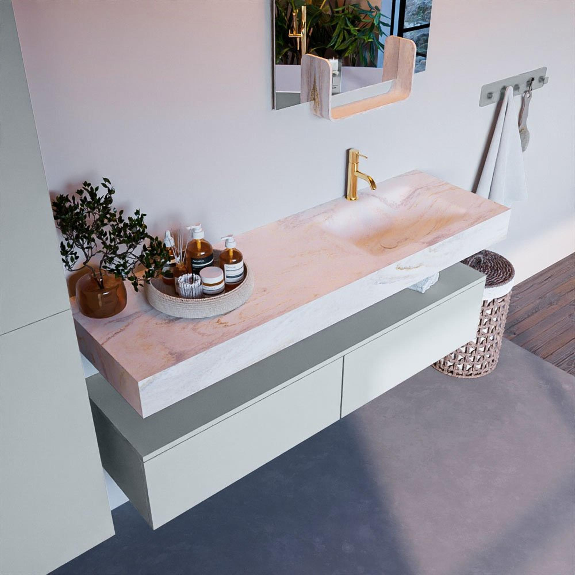 MONDIAZ ALAN - DLUX Badkamermeubelset - 150cm - onderkast - Clay - 2 lades - vrijhangende wastafel - wasbak rechts - 1 kraangat - Ostra