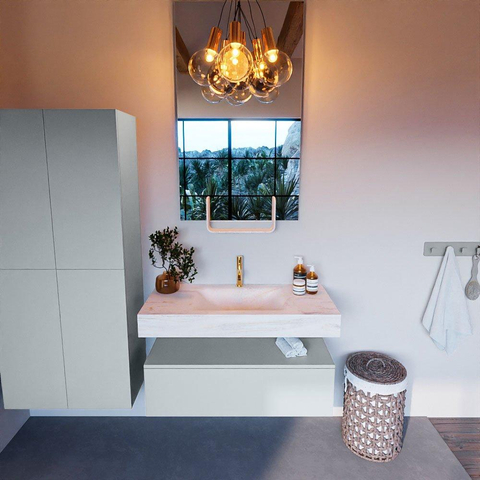 Met zijn strakke lijnen en tijdloze ontwerp is de MONDIAZ ALAN - DLUX badkamermeubelset een stijlvolle toevoeging aan elke badkamer. De Clay kleur geeft een warme en uitnodigende uitstraling, terwijl de vrijhangende wastafel zorgt voor een ruimtelijk gevoel. De 1 lade biedt voldoende opbergruimte voor al je badkamerspullen, waardoor alles netjes opgeruimd kan worden.