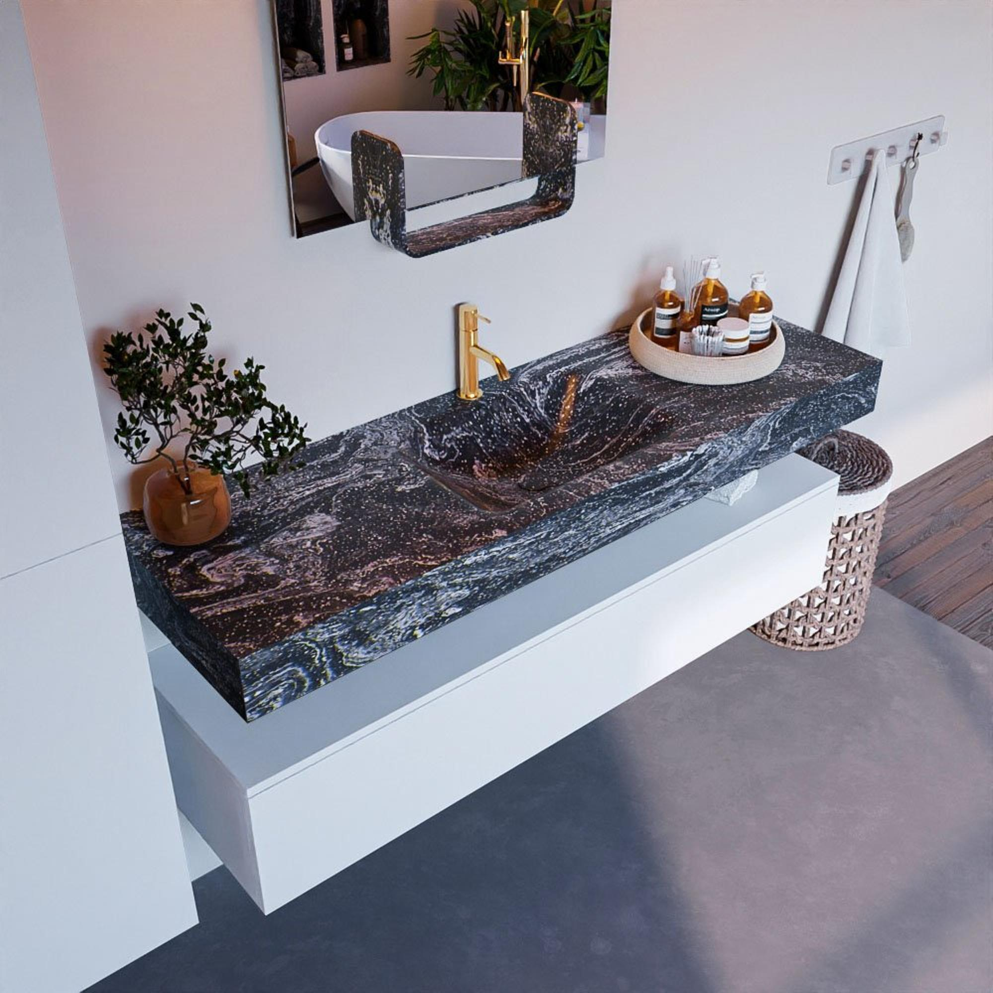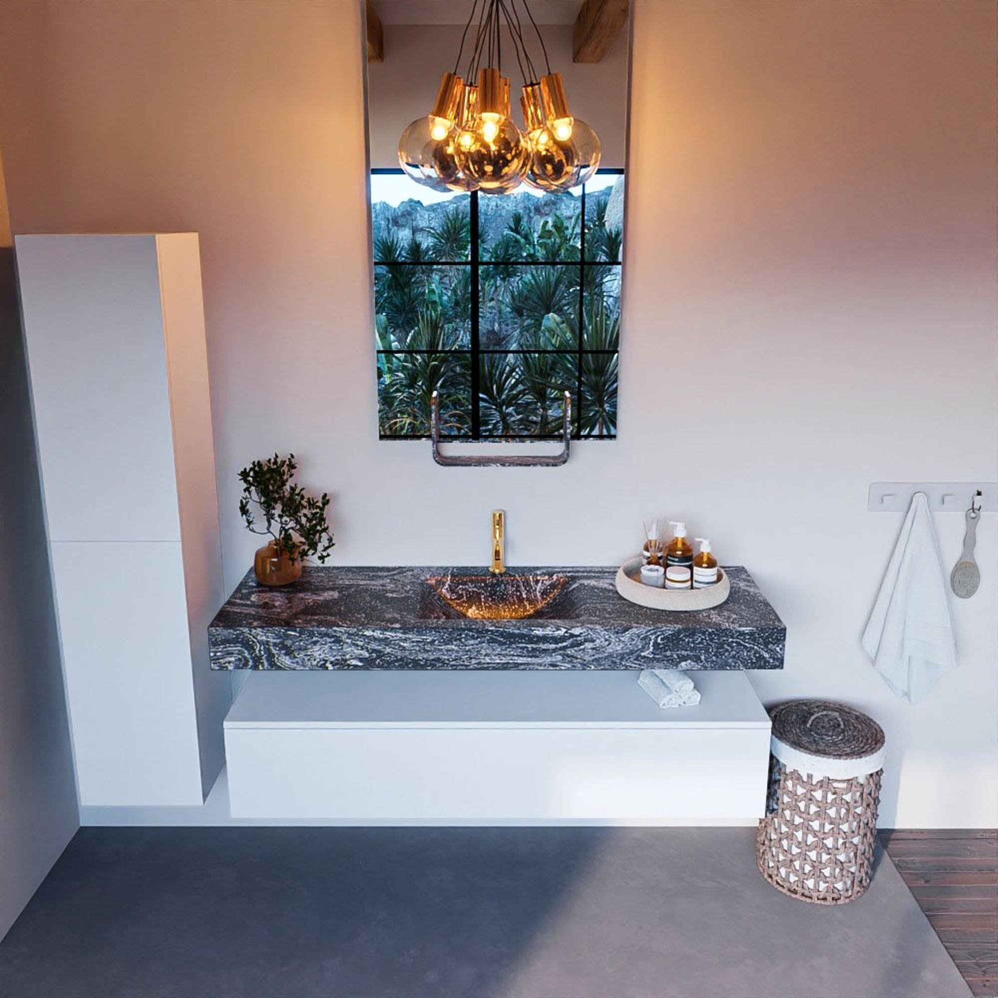 MONDIAZ ALAN - DLUX Badkamermeubelset - 150cm - onderkast - Talc - 1 lade - vrijhangende wastafel - wasbak midden - 1 kraangat - Lava
