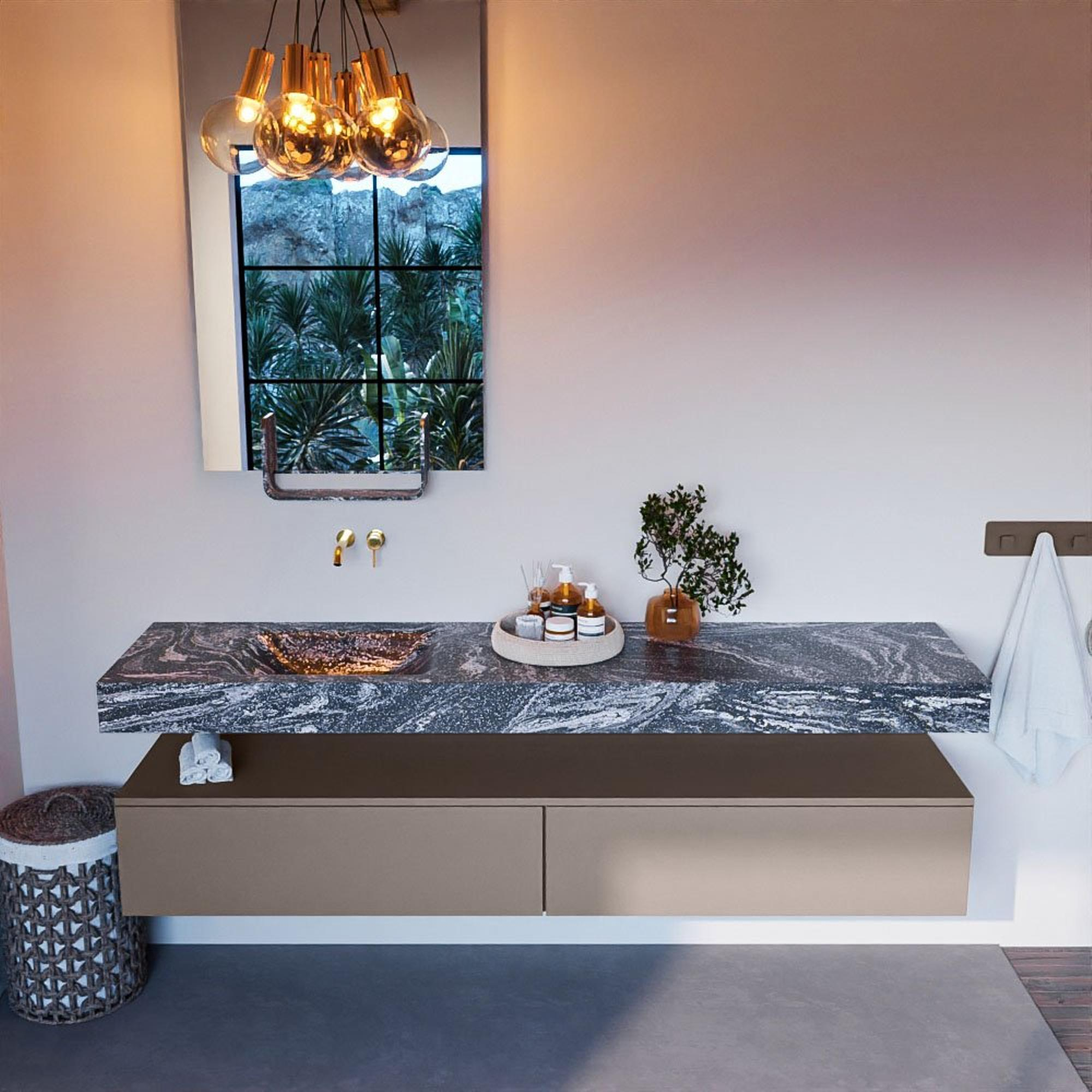 MONDIAZ ALAN - DLUX Badkamermeubelset - 200cm - onderkast - Smoke - 2 lades - vrijhangende wastafel - wasbak links - 0 kraangaten - Lava