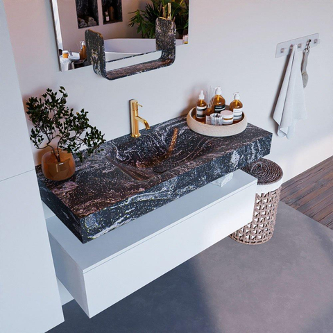 MONDIAZ ALAN - DLUX Badkamermeubelset - 110cm - onderkast - Talc - 1 lade - vrijhangende wastafel - wasbak midden - 1 kraangat - Lava