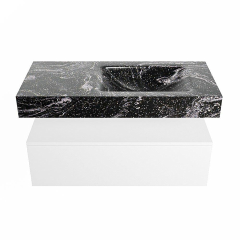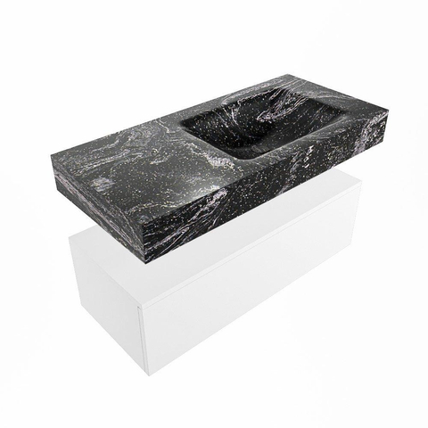 MONDIAZ ALAN - DLUX Badkamermeubelset - 100cm - onderkast - Talc - 1 lade - vrijhangende wastafel - wasbak rechts - 1 kraangat - Lava