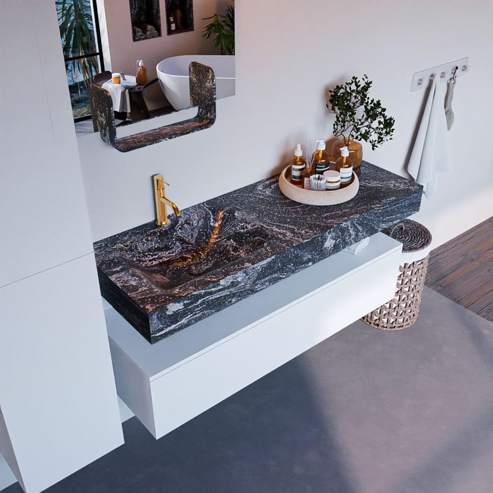 MONDIAZ ALAN - DLUX Badkamermeubelset - 130cm - onderkast - Talc - 1 lade - vrijhangende wastafel - wasbak links - 1 kraangat - Lava