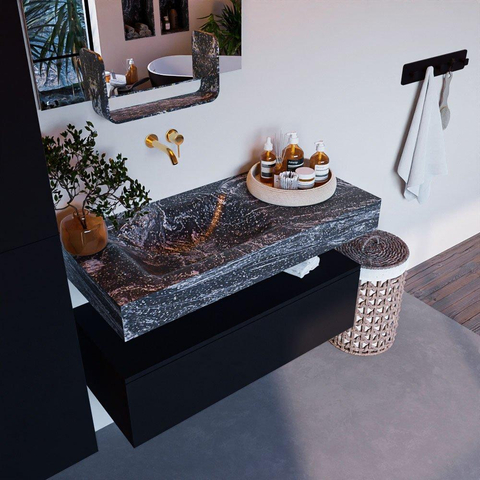 Wat de MONDIAZ ALAN - DLUX Badkamermeubelset echt onderscheidt, is zijn unieke karakter. Met 0 kraangaten en de opvallende Lava afwerking is dit meubelstuk een blikvanger in elke badkamer. Het combineert functionaliteit met design op een unieke manier, waardoor het een must-have is voor wie op zoek is naar iets speciaals.
