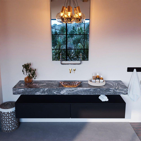 MONDIAZ ALAN - DLUX Badkamermeubelset - 200cm - onderkast - Urban - 2 lades - vrijhangende wastafel - wasbak midden - 0 kraangaten - Lava