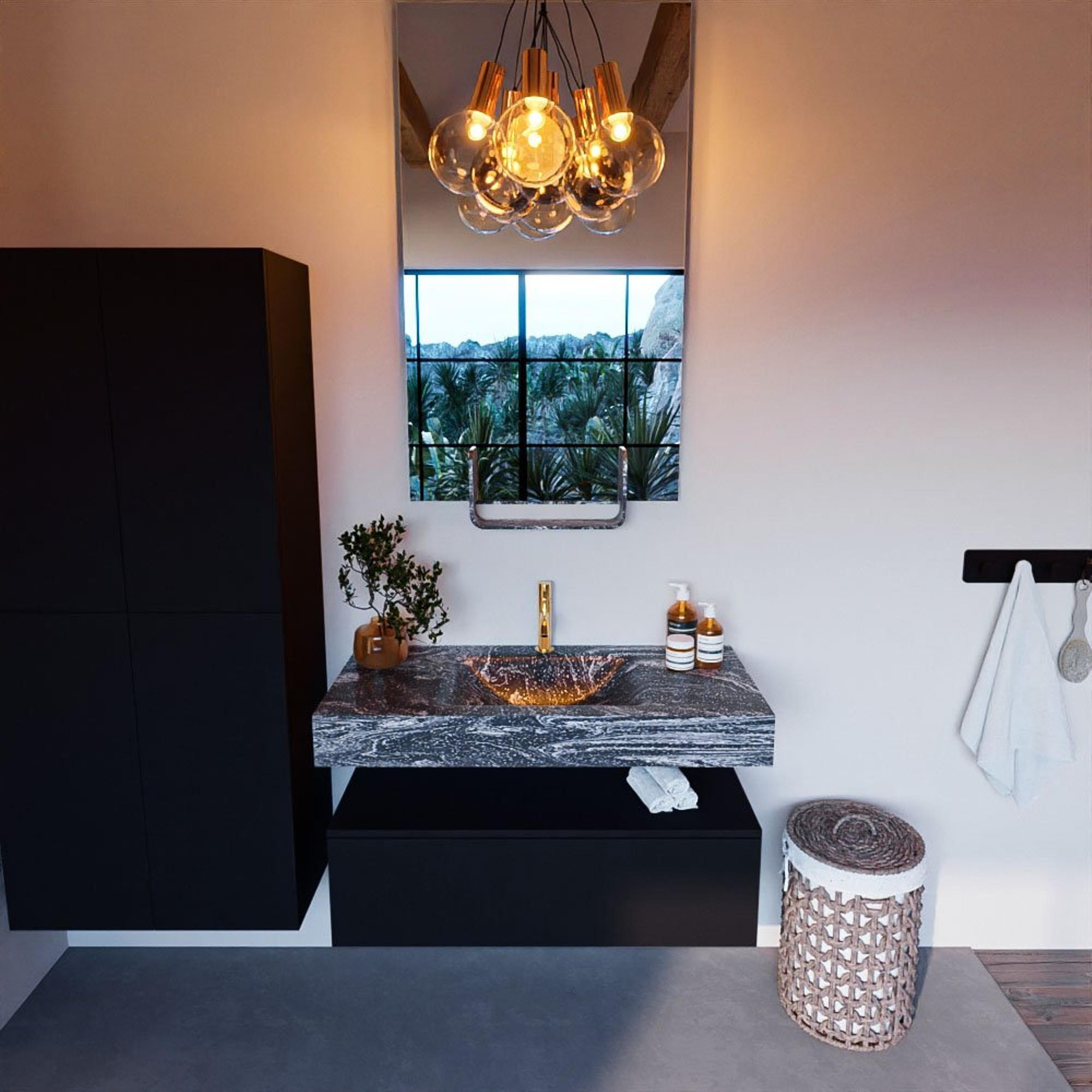 MONDIAZ ALAN - DLUX Badkamermeubelset - 100cm - onderkast - Urban - 1 lade - vrijhangende wastafel - wasbak midden - 1 kraangat - Lava