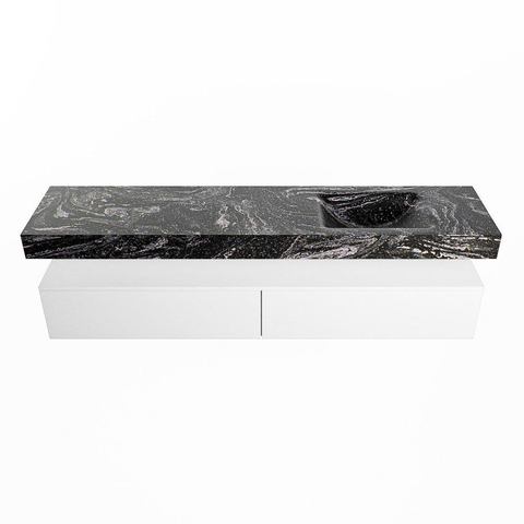 MONDIAZ ALAN - DLUX Badkamermeubelset - 200cm - onderkast - Talc - 2 lades - vrijhangende wastafel - wasbak rechts - 0 kraangaten - Lava