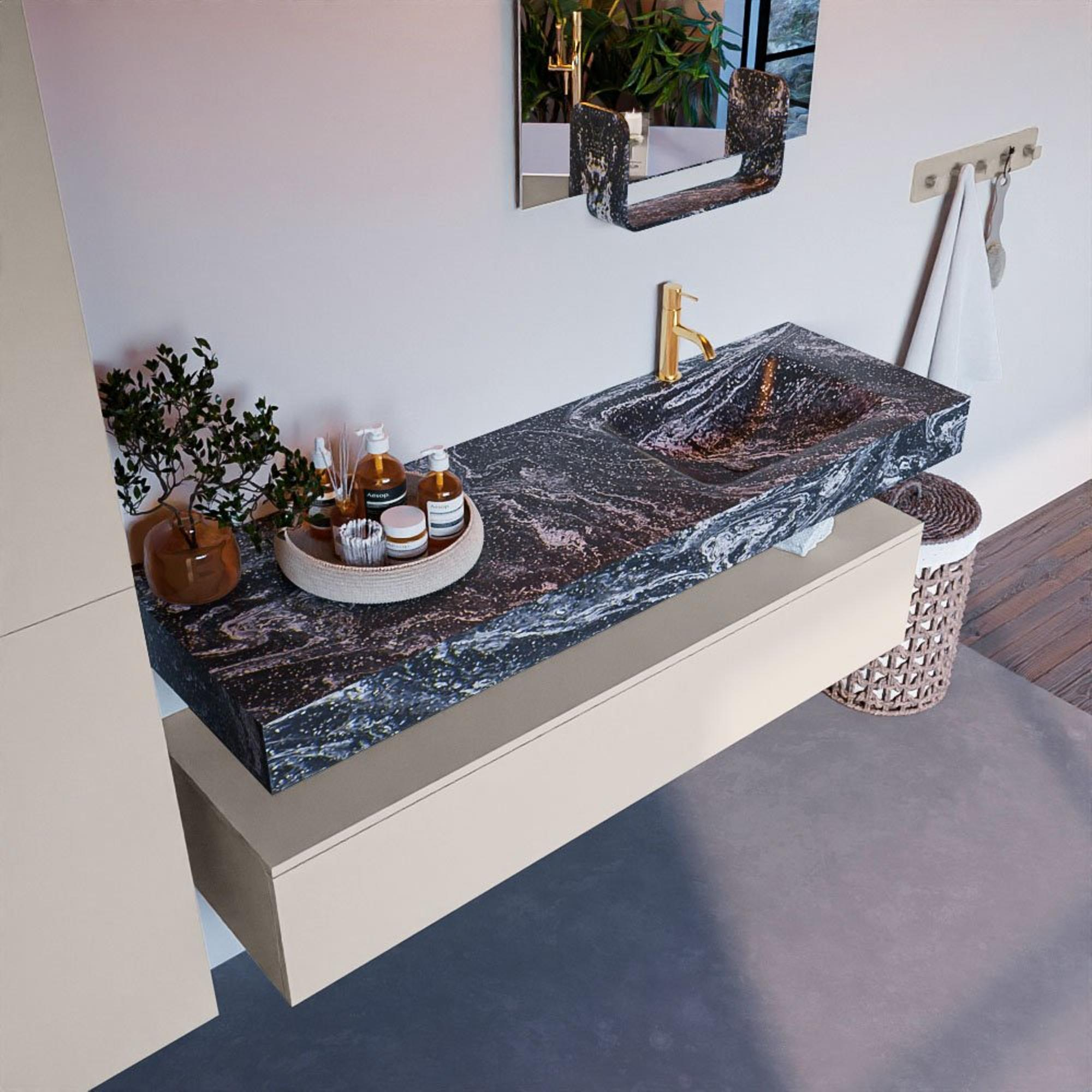 MONDIAZ ALAN - DLUX Badkamermeubelset - 150cm - onderkast - Linen - 1 lade - vrijhangende wastafel - wasbak rechts - 1 kraangat - Lava