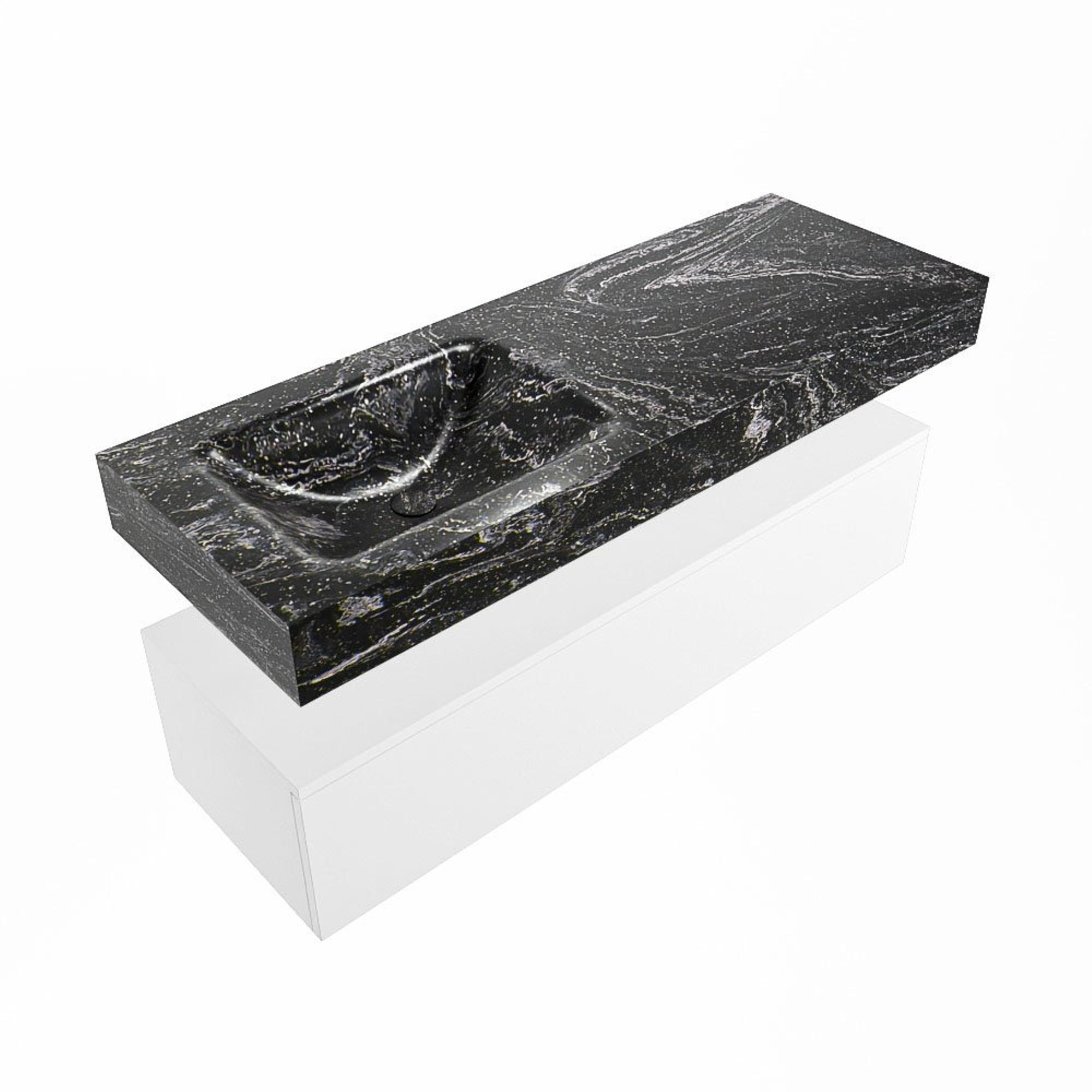 MONDIAZ ALAN - DLUX Badkamermeubelset - 130cm - onderkast - Talc - 1 lade - vrijhangende wastafel - wasbak links - 0 kraangaten - Lava