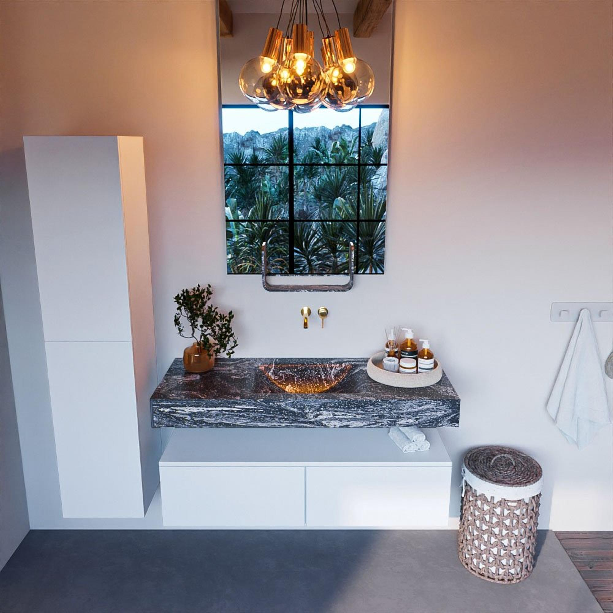 MONDIAZ ALAN - DLUX Badkamermeubelset - 120cm - onderkast - Talc - 2 lades - vrijhangende wastafel - wasbak midden - 0 kraangaten - Lava