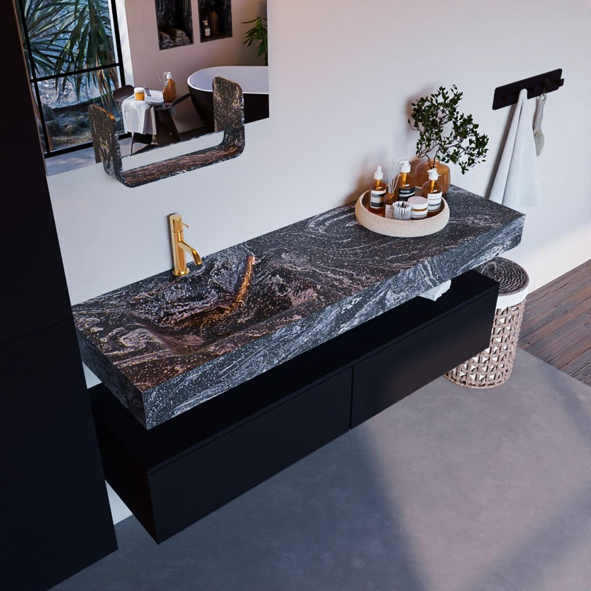 MONDIAZ ALAN - DLUX Badkamermeubelset - 150cm - onderkast - Urban - 2 lades - vrijhangende wastafel - wasbak links - 1 kraangat - Lava