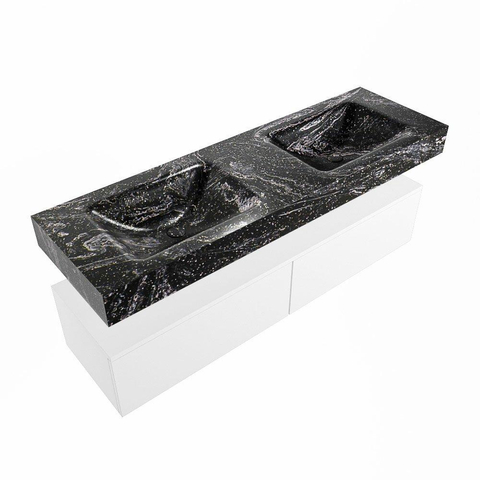MONDIAZ ALAN - DLUX Badkamermeubelset - 150cm - onderkast - Talc - 2 lades - vrijhangende wastafel - 2 wasbakken - 2 kraangaten - Lava