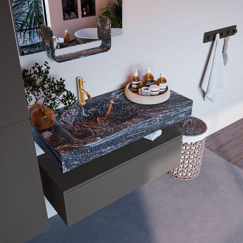 MONDIAZ ALAN - DLUX Badkamermeubelset - 100cm - onderkast - Dark grey - 1 lade - vrijhangende wastafel - wasbak links - 1 kraangat - Lava