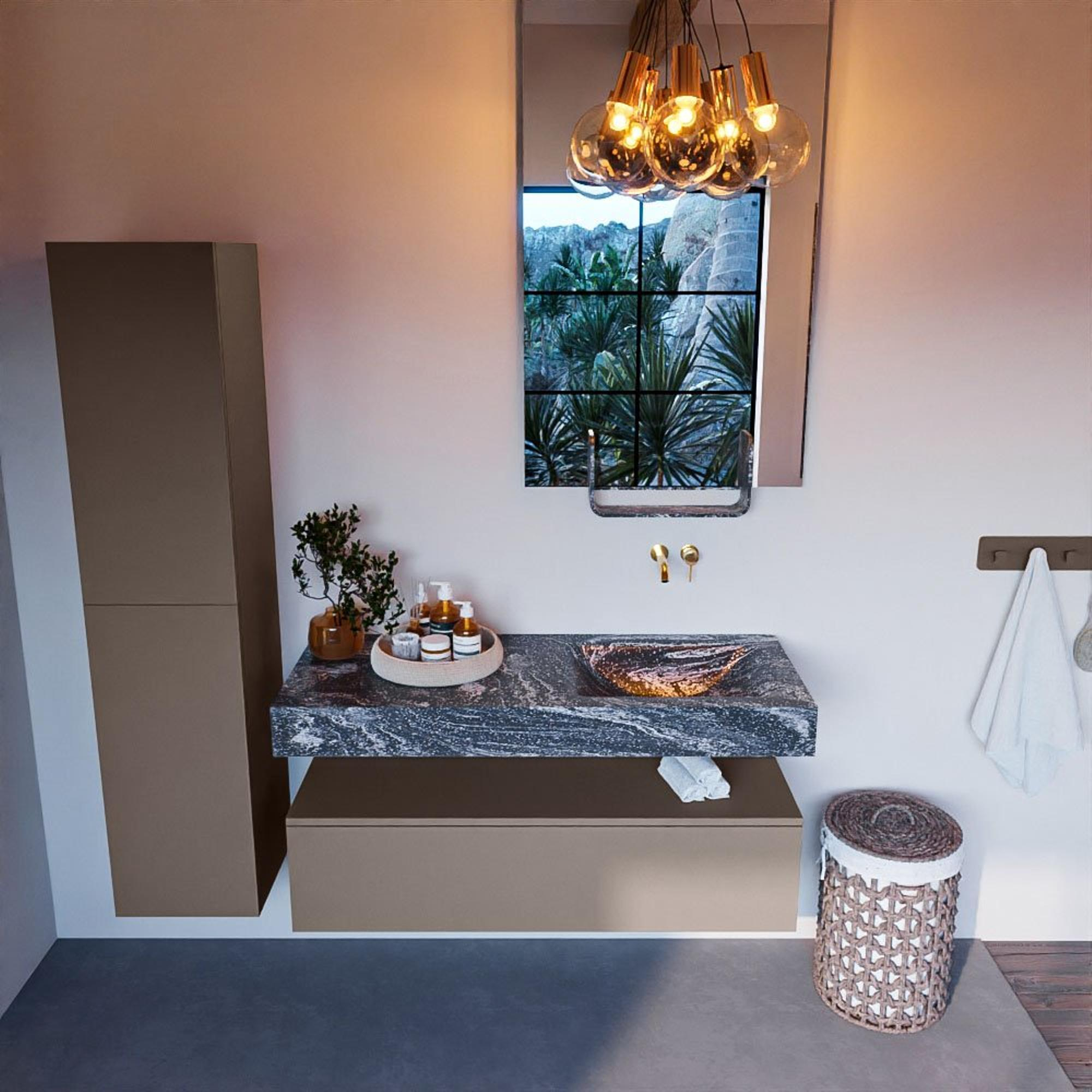 MONDIAZ ALAN - DLUX Badkamermeubelset - 120cm - onderkast - Smoke - 1 lade - vrijhangende wastafel - wasbak rechts - 0 kraangaten - Lava