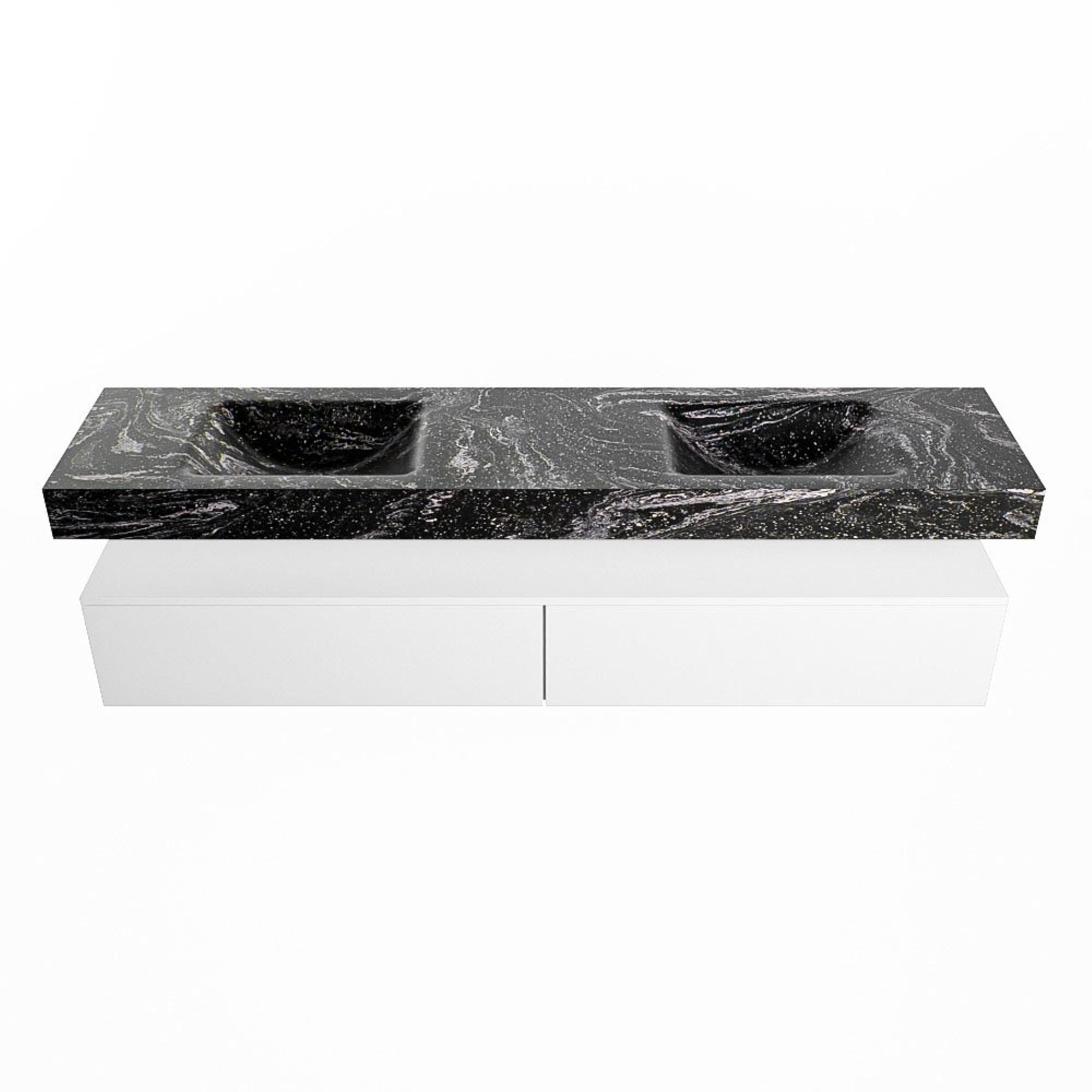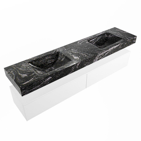 MONDIAZ ALAN - DLUX Badkamermeubelset - 200cm - onderkast - Talc - 2 lades - vrijhangende wastafel - 2 wasbakken - 2 kraangaten - Lava