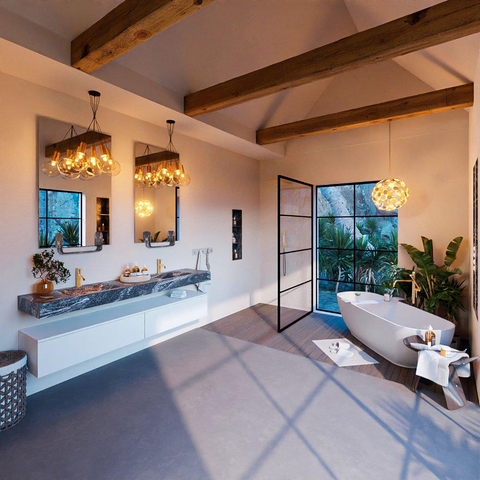 - Vrijhangende wastafel met 2 wasbakken