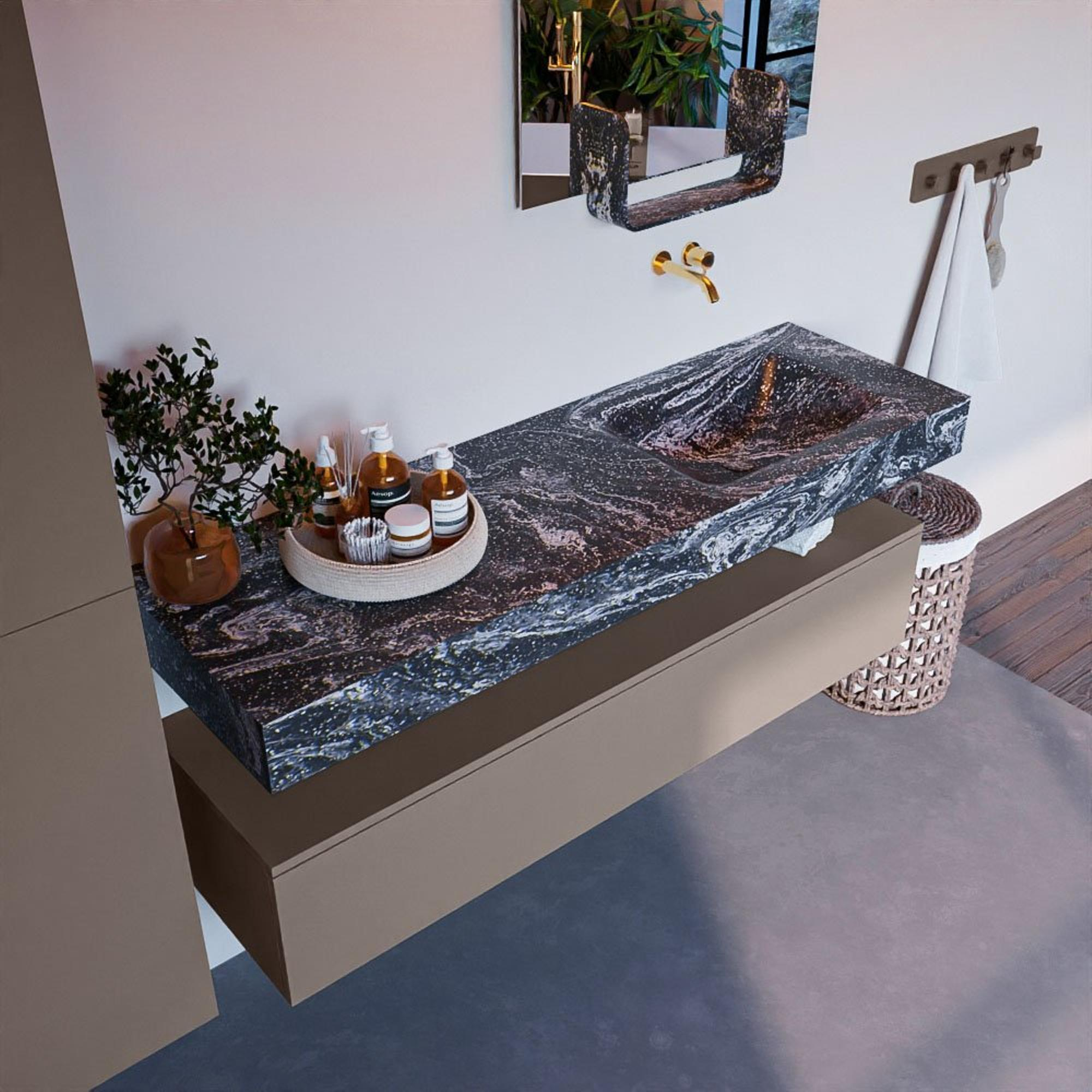 MONDIAZ ALAN - DLUX Badkamermeubelset - 150cm - onderkast - Smoke - 1 lade - vrijhangende wastafel - wasbak rechts - 0 kraangaten - Lava
