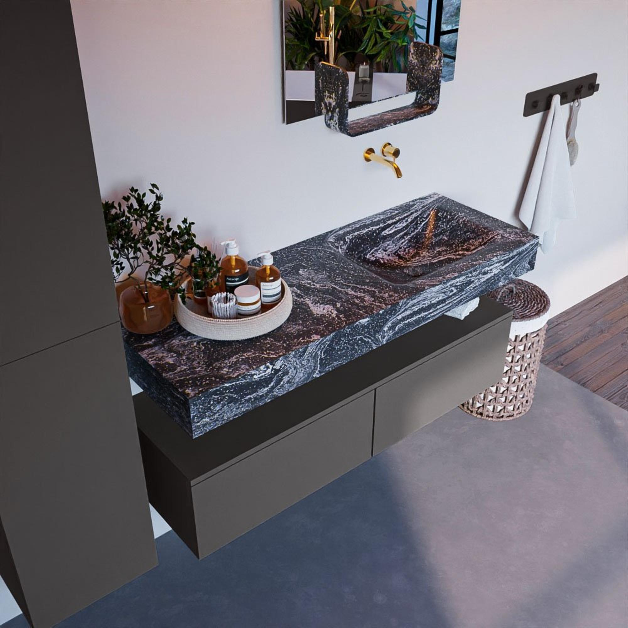 MONDIAZ ALAN - DLUX Badkamermeubelset - 130cm - onderkast - Dark grey - 2 lades - vrijhangende wastafel - wasbak rechts - 0 kraangaten - Lava