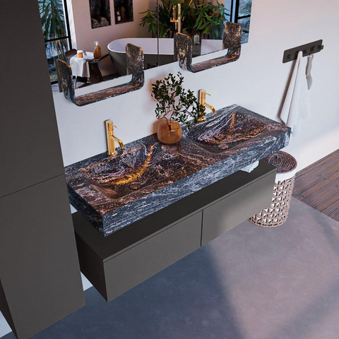 MONDIAZ ALAN - DLUX Badkamermeubelset - 130cm - onderkast - Dark grey - 2 lades - vrijhangende wastafel - 2 wasbakken - 2 kraangaten - Lava