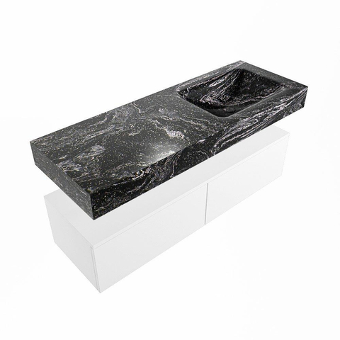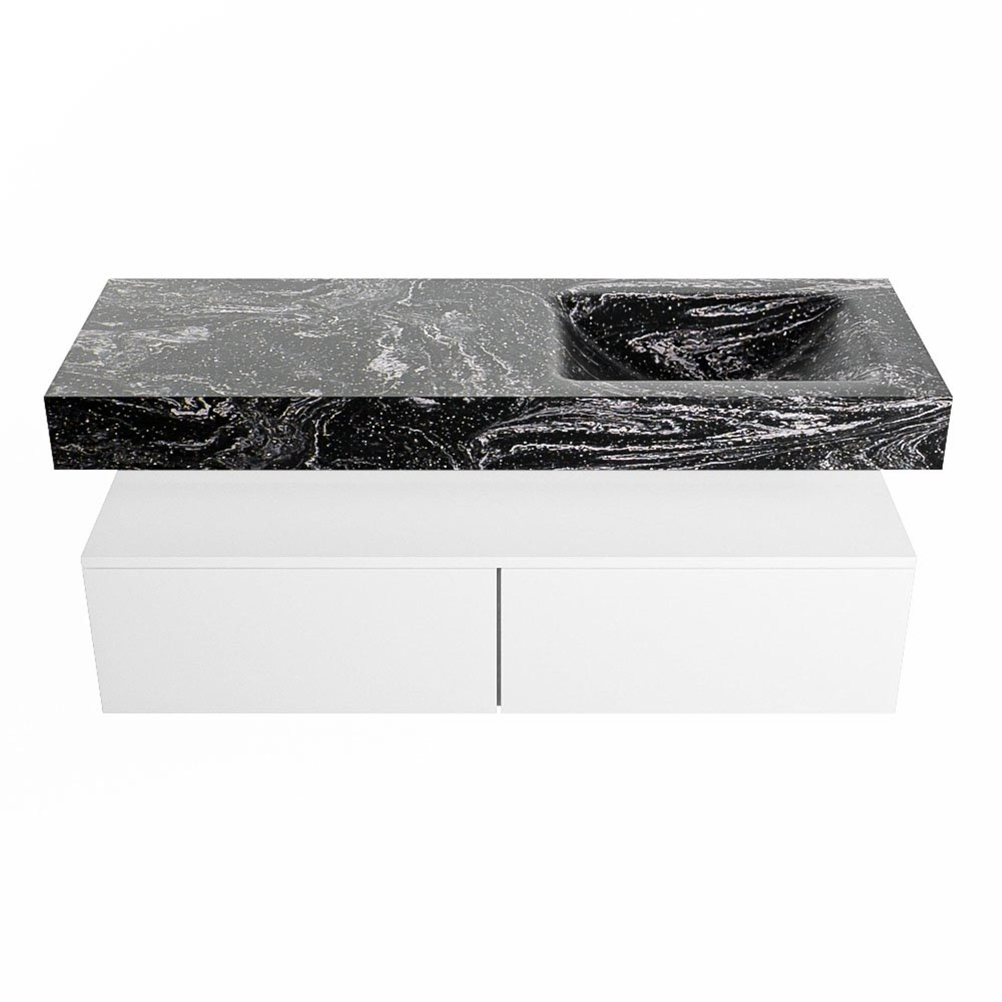 MONDIAZ ALAN - DLUX Badkamermeubelset - 130cm - onderkast - Talc - 2 lades - vrijhangende wastafel - wasbak rechts - 0 kraangaten - Lava