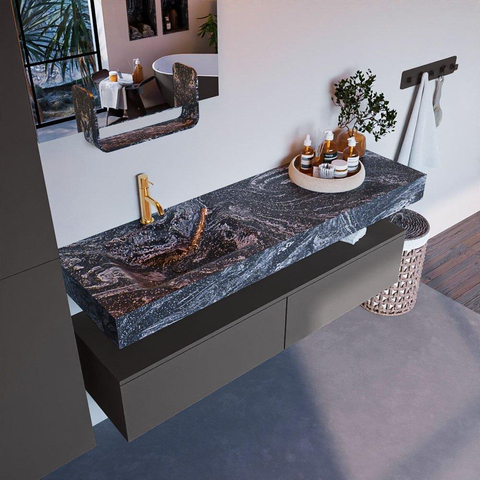 MONDIAZ ALAN - DLUX Badkamermeubelset - 150cm - onderkast - Dark grey - 2 lades - vrijhangende wastafel - wasbak links - 1 kraangat - Lava