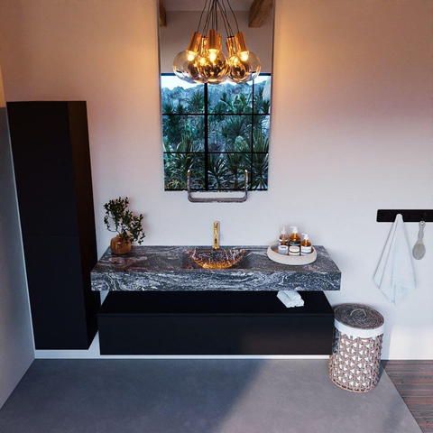 MONDIAZ ALAN - DLUX Badkamermeubelset - 150cm - onderkast - Urban - 1 lade - vrijhangende wastafel - wasbak midden - 1 kraangat - Lava