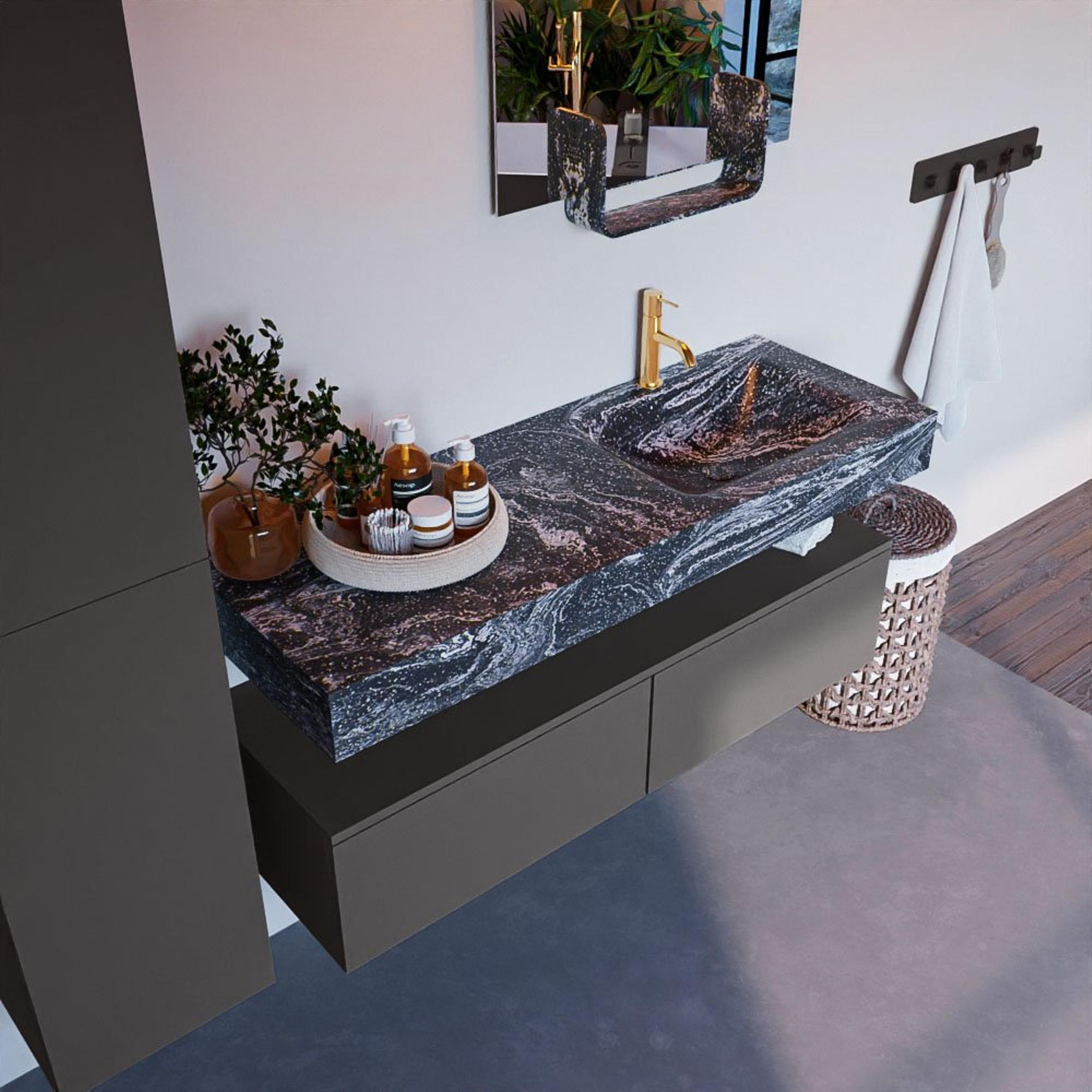 MONDIAZ ALAN - DLUX Badkamermeubelset - 130cm - onderkast - Dark grey - 2 lades - vrijhangende wastafel - wasbak rechts - 1 kraangat - Lava