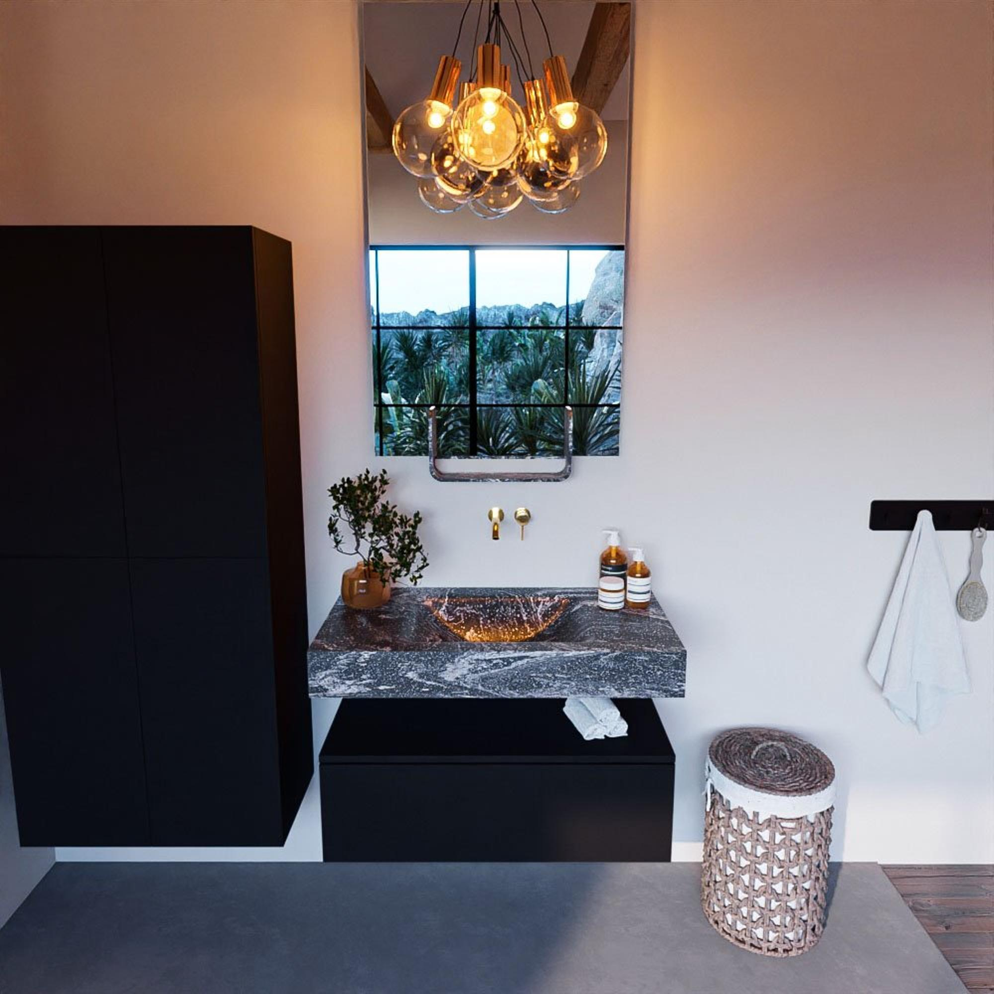 MONDIAZ ALAN - DLUX Badkamermeubelset - 90cm - onderkast - Urban - 1 lade - vrijhangende wastafel - wasbak midden - 0 kraangaten - Lava