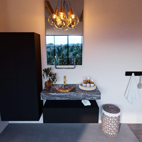 De MONDIAZ ALAN - DLUX Badkamermeubelset straalt stijl en elegantie uit. De Urban onderkast met 1 lade en vrijhangende wastafel creëren een eigentijdse look die perfect past bij moderne badkamers. De Lava kleur voegt een vleugje luxe toe aan de ruimte, waardoor deze set een echte blikvanger is.