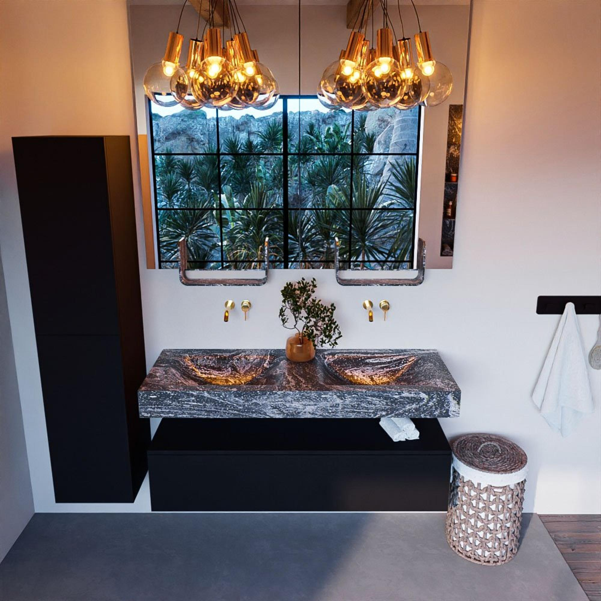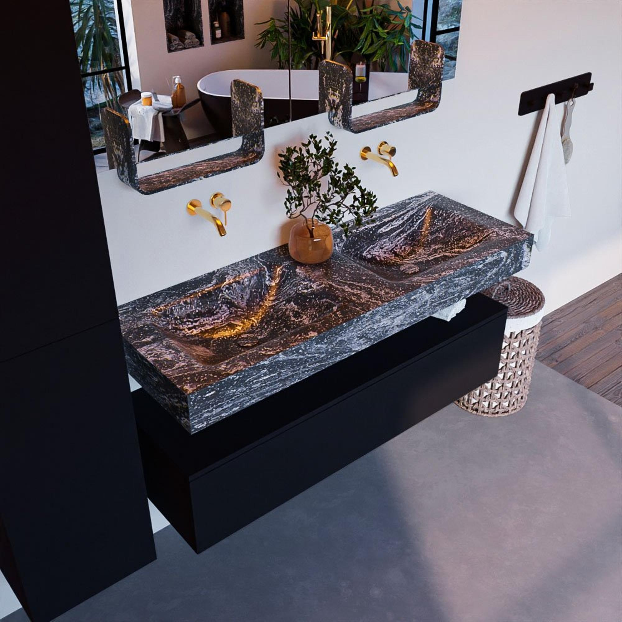 MONDIAZ ALAN - DLUX Badkamermeubelset - 130cm - onderkast - Urban - 1 lade - vrijhangende wastafel - 2 wasbakken - 0 kraangaten - Lava