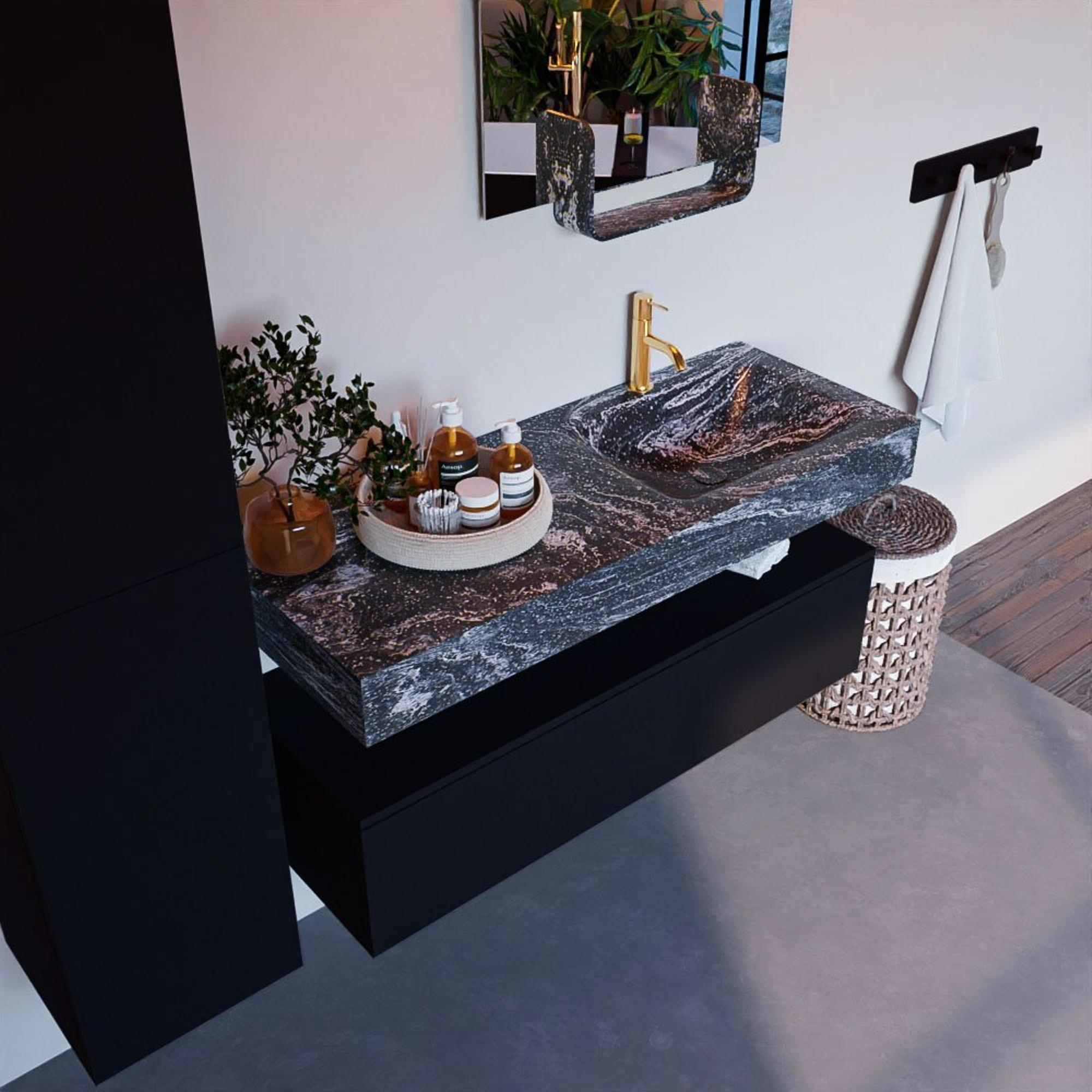 MONDIAZ ALAN - DLUX Badkamermeubelset - 120cm - onderkast - Urban - 1 lade - vrijhangende wastafel - wasbak rechts - 1 kraangat - Lava