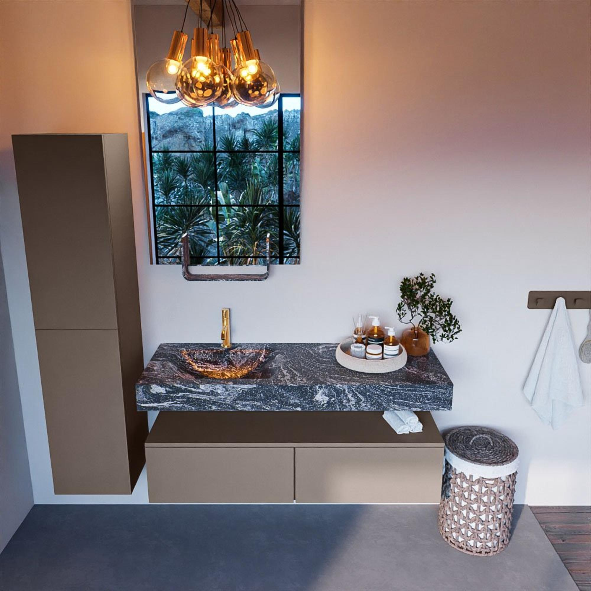 MONDIAZ ALAN - DLUX Badkamermeubelset - 130cm - onderkast - Smoke - 2 lades - vrijhangende wastafel - wasbak links - 1 kraangat - Lava