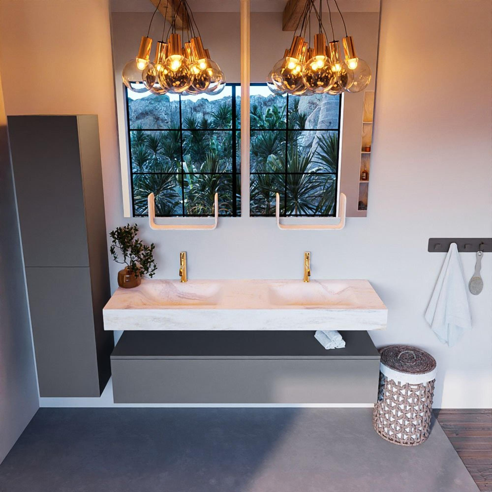 MONDIAZ ALAN - DLUX Badkamermeubelset - 150cm - onderkast - Plata - 1 lade - vrijhangende wastafel - 2 wasbakken - 2 kraangaten - Ostra