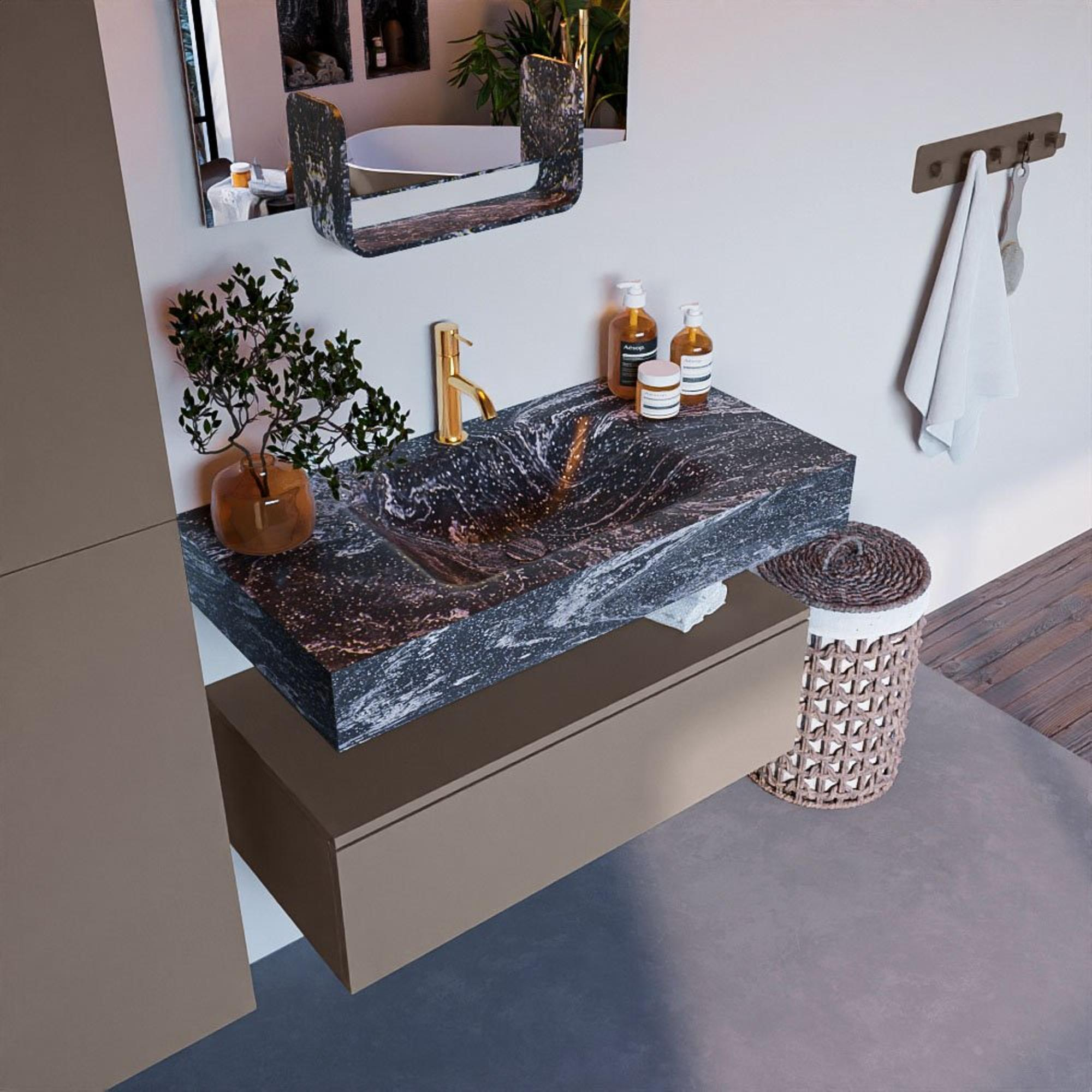MONDIAZ ALAN - DLUX Badkamermeubelset - 90cm - onderkast - Smoke - 1 lade - vrijhangende wastafel - wasbak midden - 1 kraangat - Lava