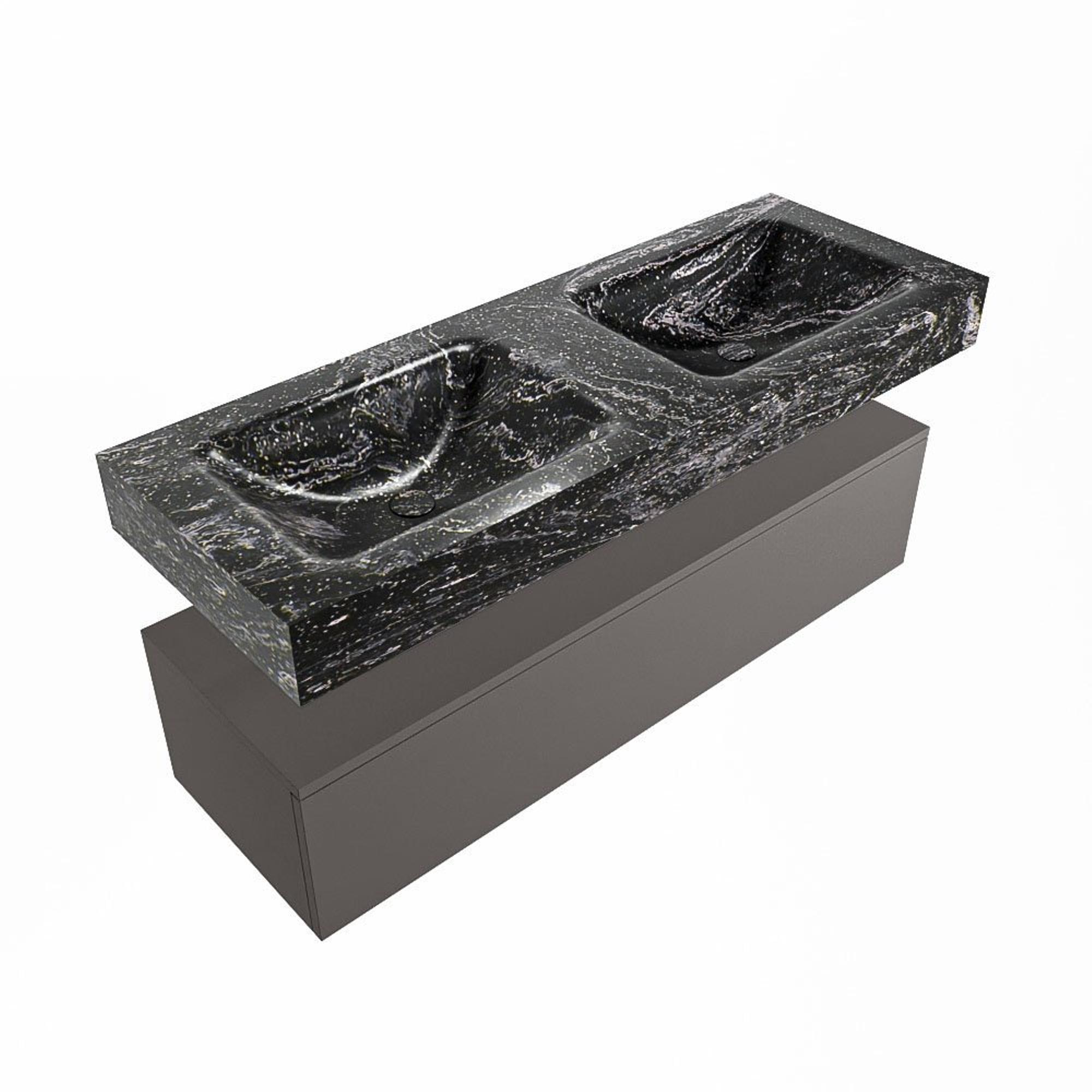 MONDIAZ ALAN - DLUX Badkamermeubelset - 130cm - onderkast - Dark grey - 1 lade - vrijhangende wastafel - 2 wasbakken - 0 kraangaten - Lava