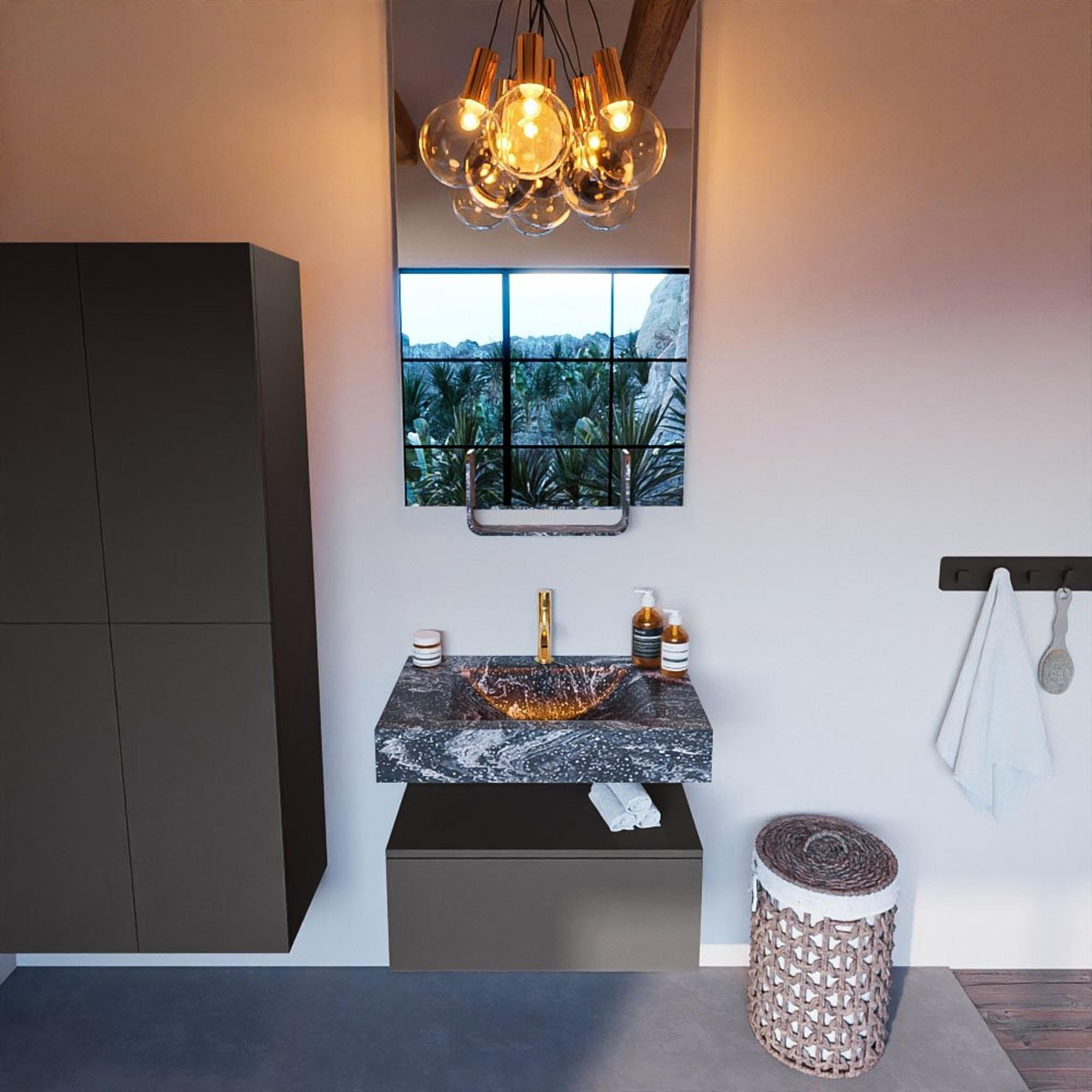 MONDIAZ ALAN - DLUX Badkamermeubelset - 70cm - onderkast - Dark grey - 1 lade - vrijhangende wastafel - wasbak midden - 1 kraangat - Lava