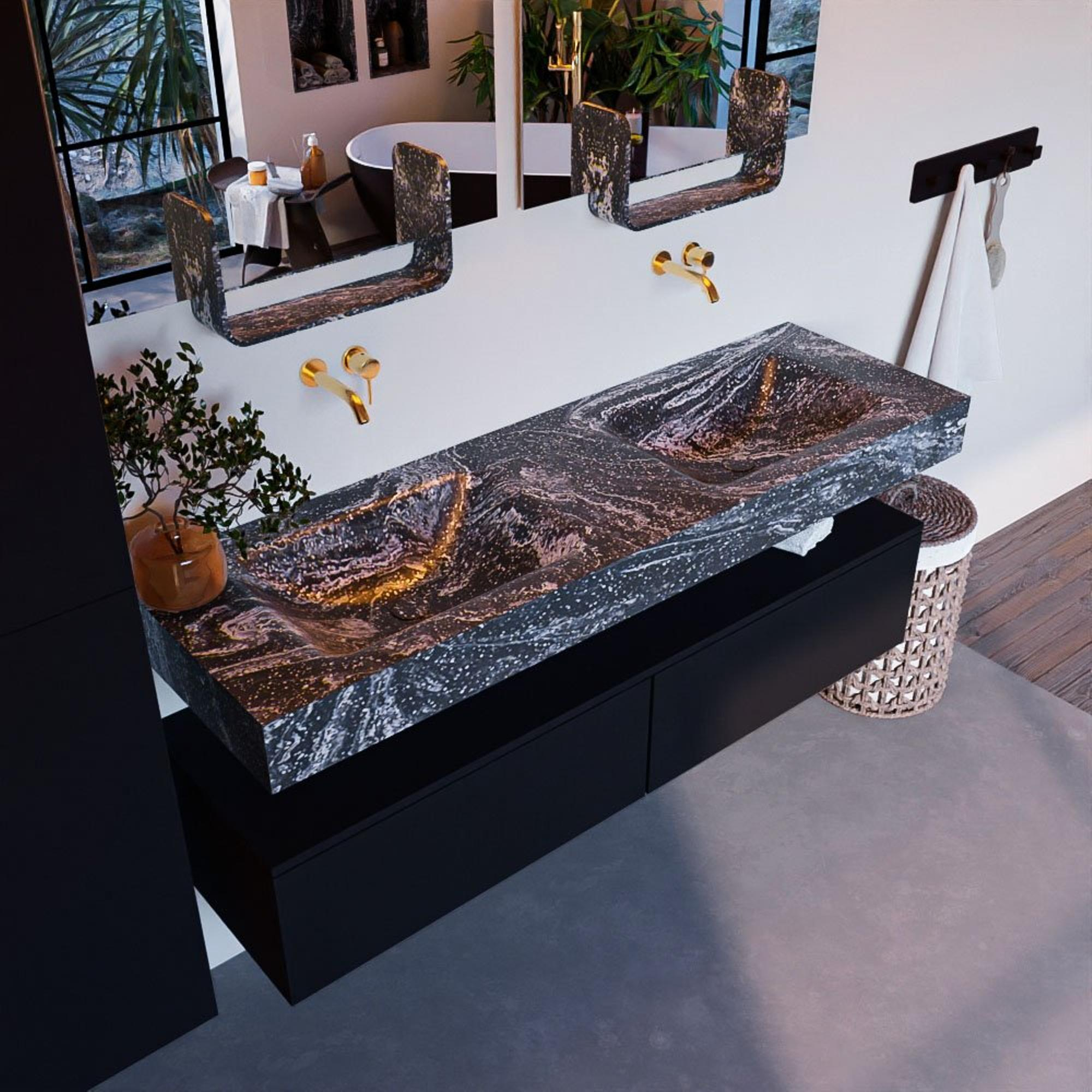 MONDIAZ ALAN - DLUX Badkamermeubelset - 150cm - onderkast - Urban - 2 lades - vrijhangende wastafel - 2 wasbakken - 0 kraangaten - Lava
