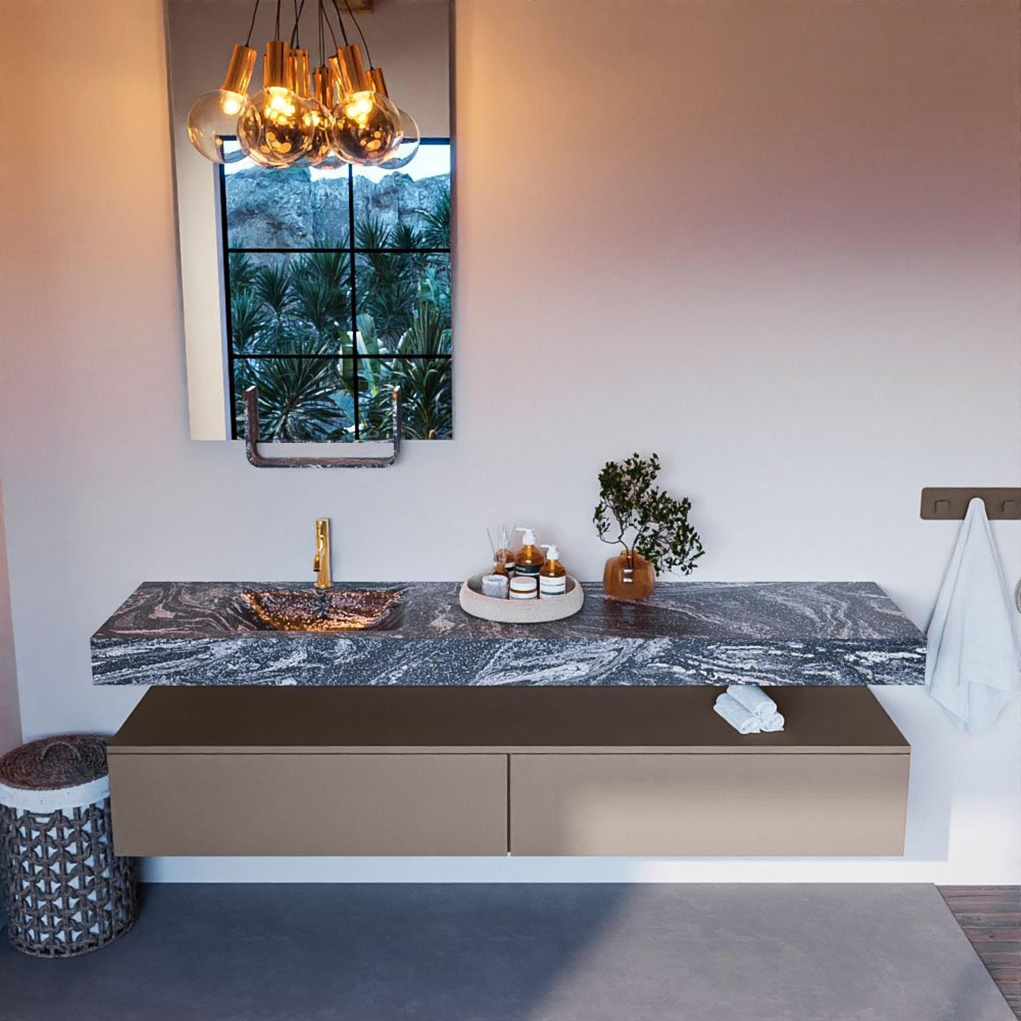 MONDIAZ ALAN - DLUX Badkamermeubelset - 200cm - onderkast - Smoke - 2 lades - vrijhangende wastafel - wasbak links - 1 kraangat - Lava