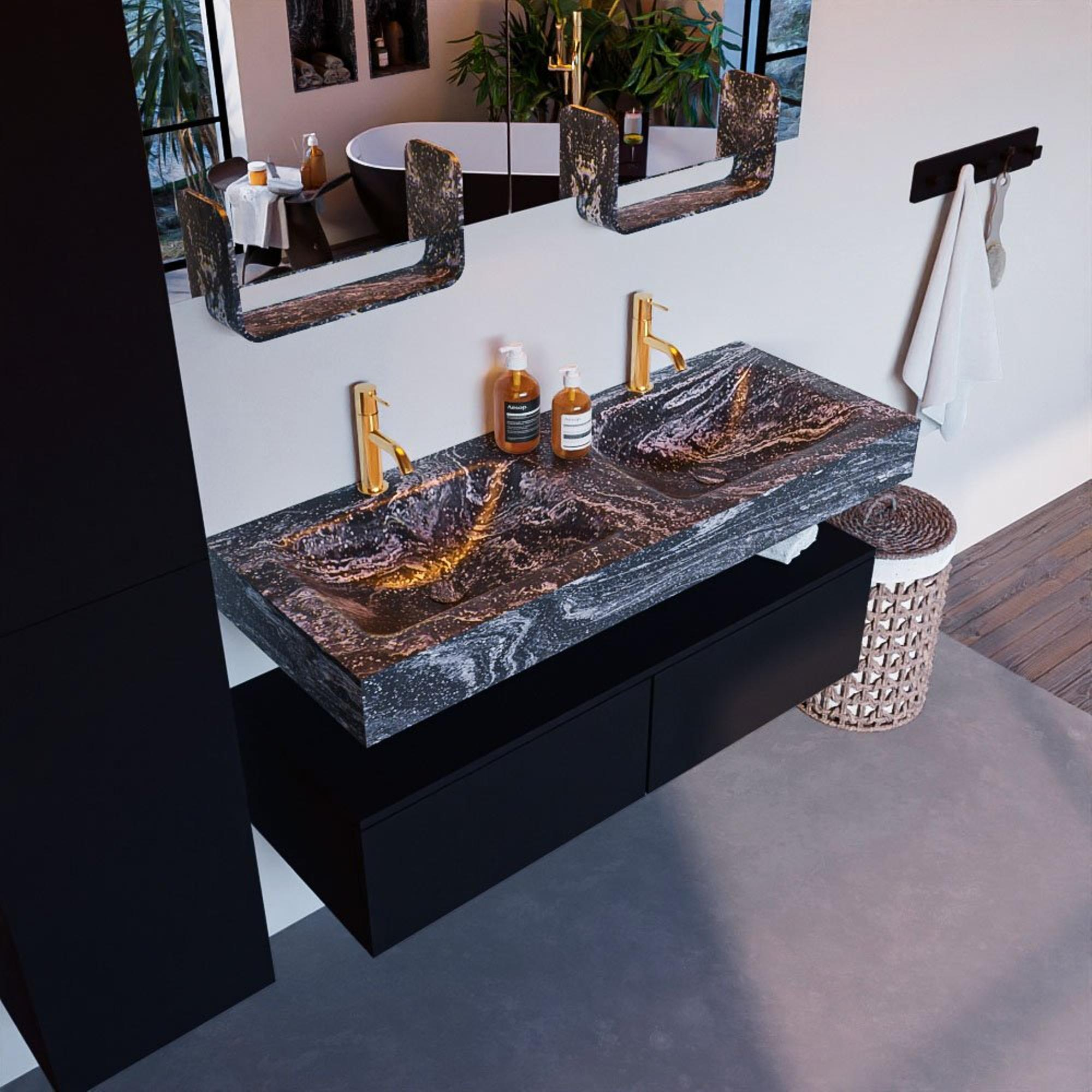 MONDIAZ ALAN - DLUX Badkamermeubelset - 120cm - onderkast - Urban - 2 lades - vrijhangende wastafel - 2 wasbakken - 2 kraangaten - Lava