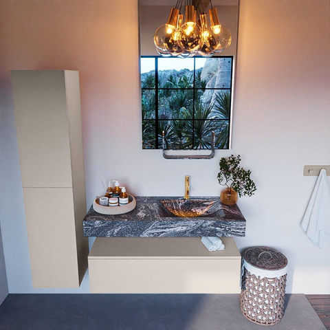 MONDIAZ ALAN - DLUX Badkamermeubelset - 110cm - onderkast - Linen - 1 lade - vrijhangende wastafel - wasbak rechts - 1 kraangat - Lava