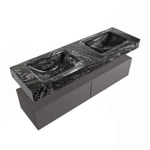MONDIAZ ALAN - DLUX Badkamermeubelset - 150cm - onderkast - Dark grey - 2 lades - vrijhangende wastafel - 2 wasbakken - 2 kraangaten - Lava