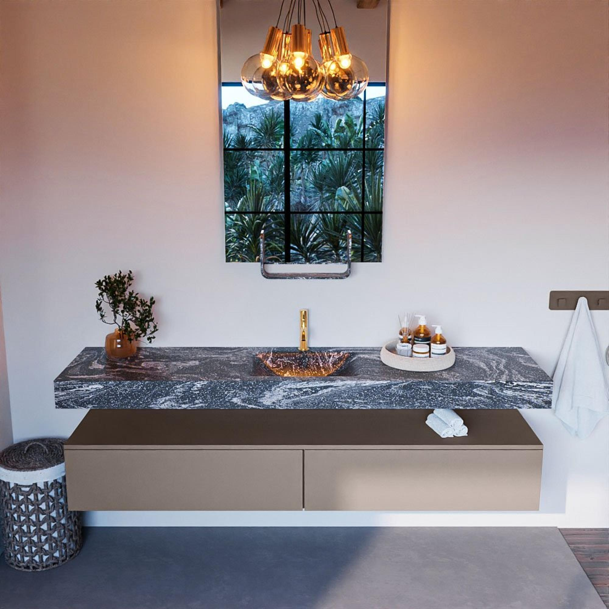 MONDIAZ ALAN - DLUX Badkamermeubelset - 200cm - onderkast - Smoke - 2 lades - vrijhangende wastafel - wasbak midden - 1 kraangat - Lava