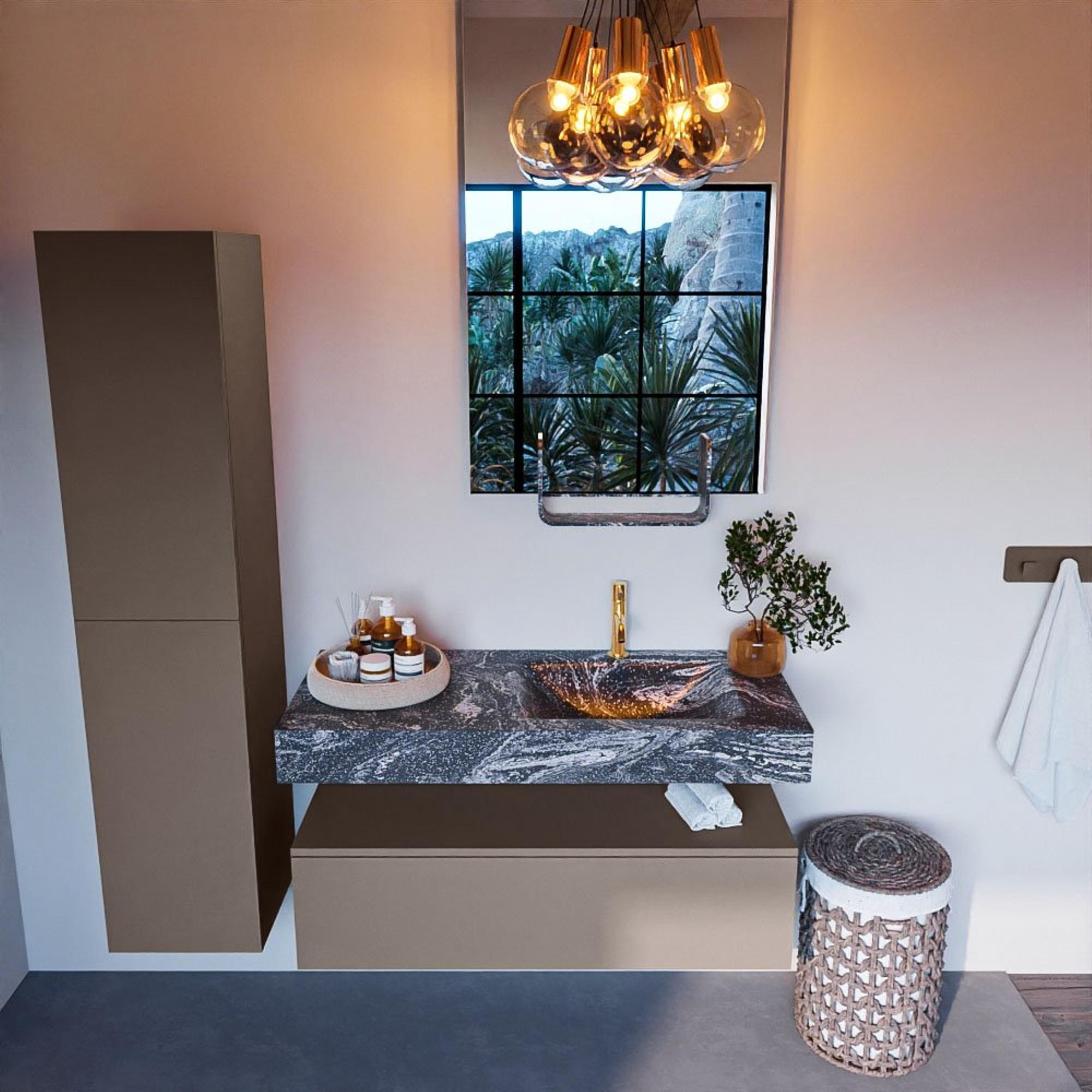 MONDIAZ ALAN - DLUX Badkamermeubelset - 110cm - onderkast - Smoke - 1 lade - vrijhangende wastafel - wasbak rechts - 1 kraangat - Lava