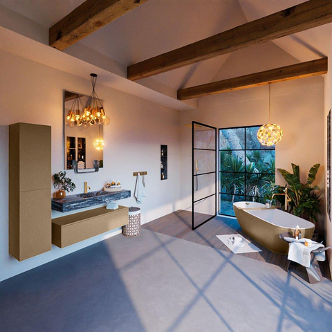 Met de Lava afwerking straalt dit badkamermeubelset luxe uit. De combinatie van materialen en kleuren zorgt voor een exclusieve uitstraling die de badkamer transformeert tot een oase van ontspanning en comfort. De hoogwaardige kwaliteit en het doordachte ontwerp maken dit meubelstuk een must-have voor wie op zoek is naar een badkamer met een vleugje luxe.