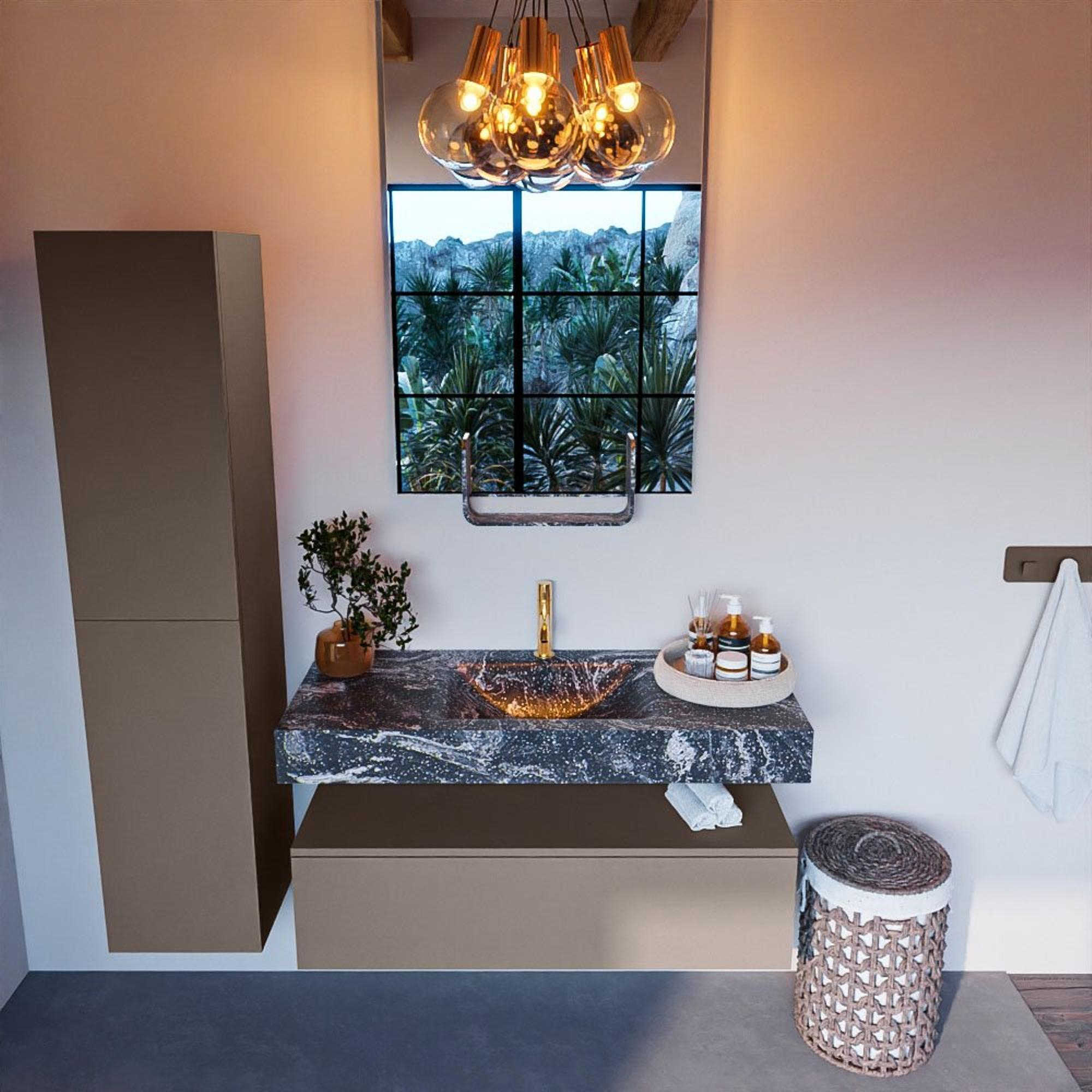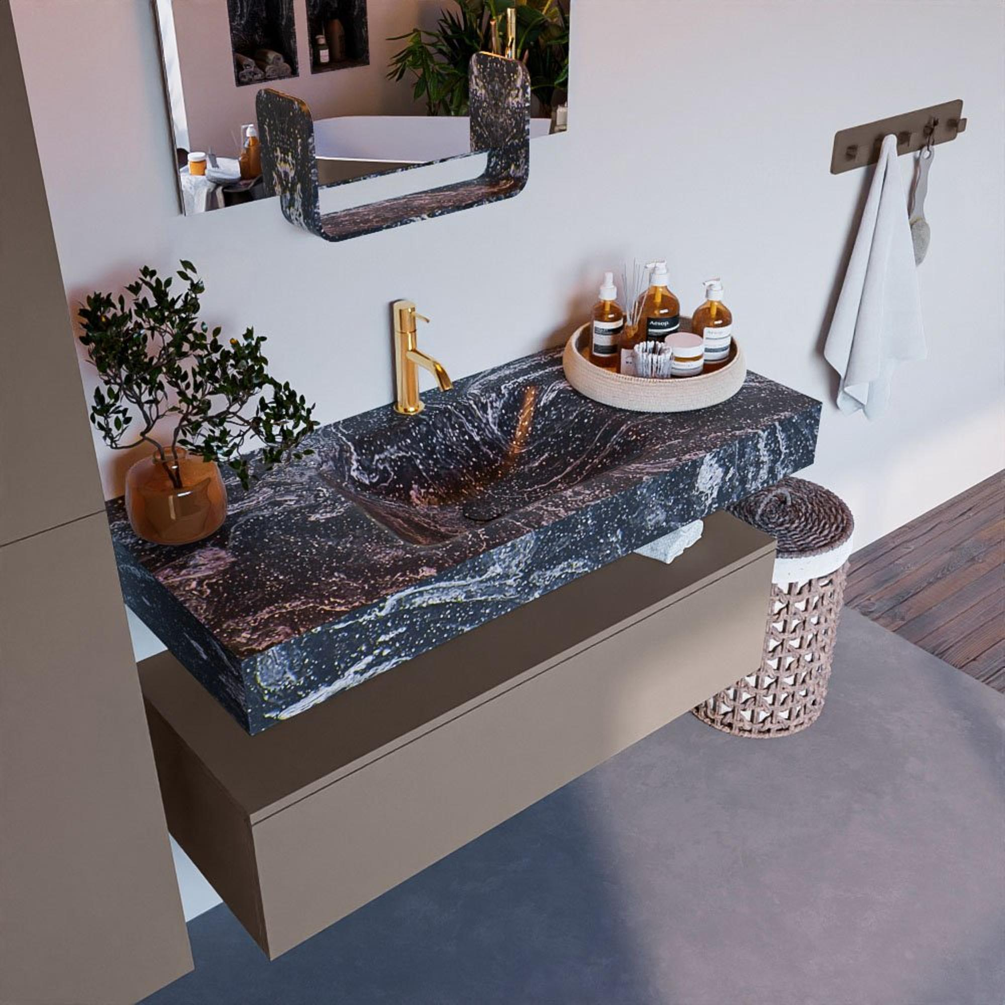 MONDIAZ ALAN - DLUX Badkamermeubelset - 110cm - onderkast - Smoke - 1 lade - vrijhangende wastafel - wasbak midden - 1 kraangat - Lava
