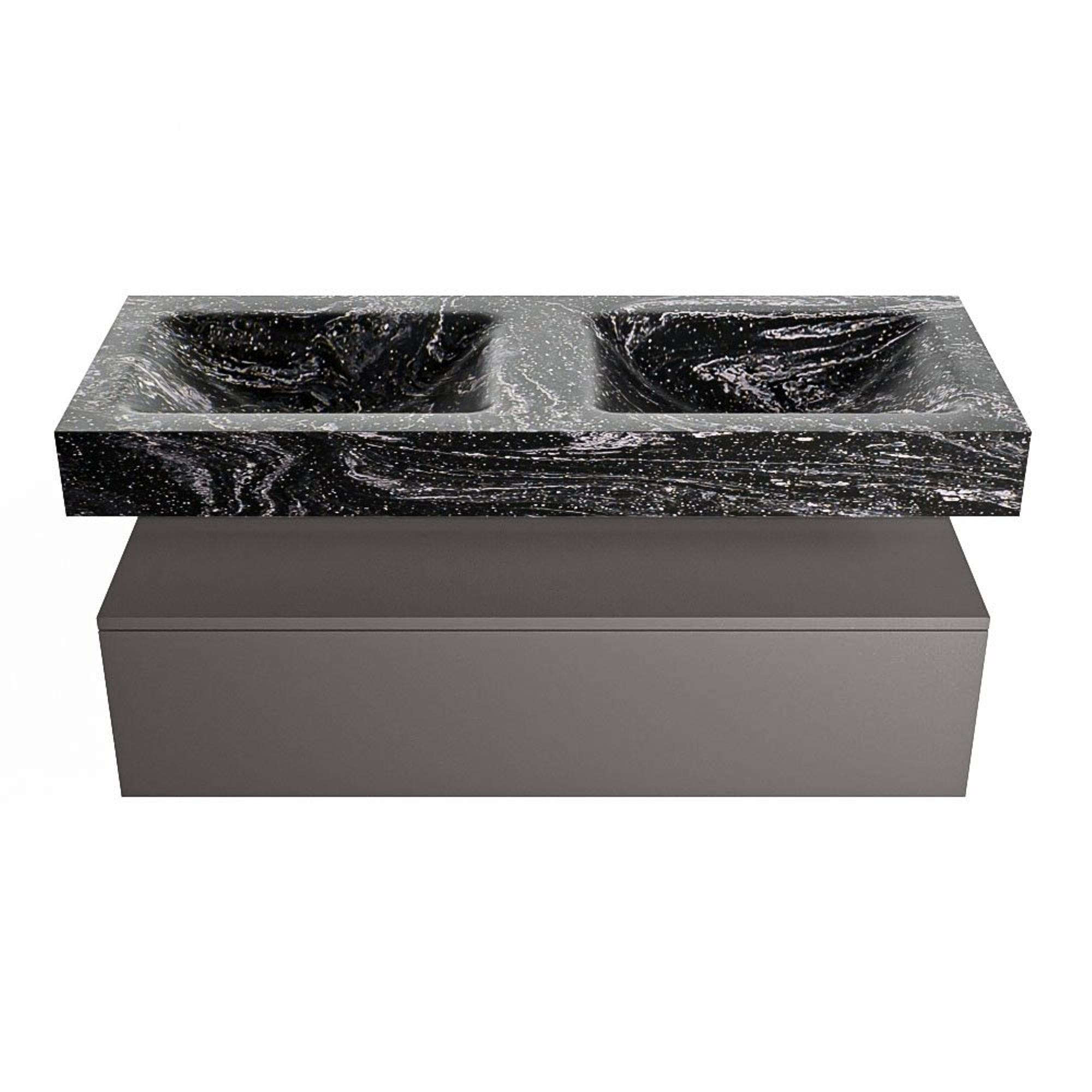 MONDIAZ ALAN - DLUX Badkamermeubelset - 120cm - onderkast - Dark grey - 1 lade - vrijhangende wastafel - 2 wasbakken - 2 kraangaten - Lava