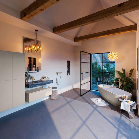 Dit badkamermeubelset is ontworpen met aandacht voor detail en vakmanschap. De Linen afwerking geeft een warme en uitnodigende uitstraling, terwijl de vrijhangende wastafel zorgt voor een ruimtelijk gevoel in de badkamer. De Lava kleur voegt een vleugje moderniteit toe en creëert een harmonieus geheel. Met zijn strakke lijnen en elegante ontwerp is dit badkamermeubelset een blikvanger in elke badkamer.