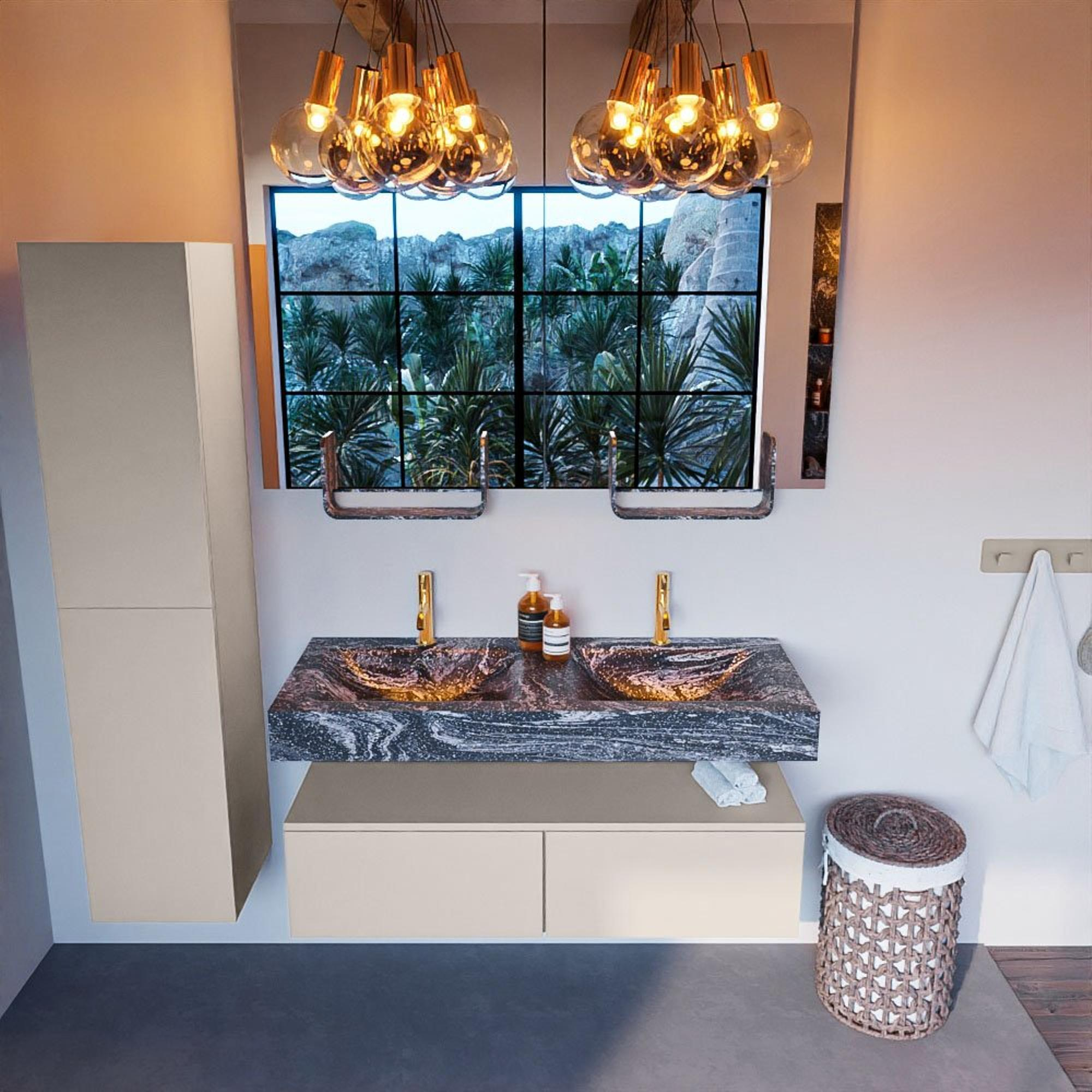 MONDIAZ ALAN - DLUX Badkamermeubelset - 120cm - onderkast - Linen - 2 lades - vrijhangende wastafel - 2 wasbakken - 2 kraangaten - Lava