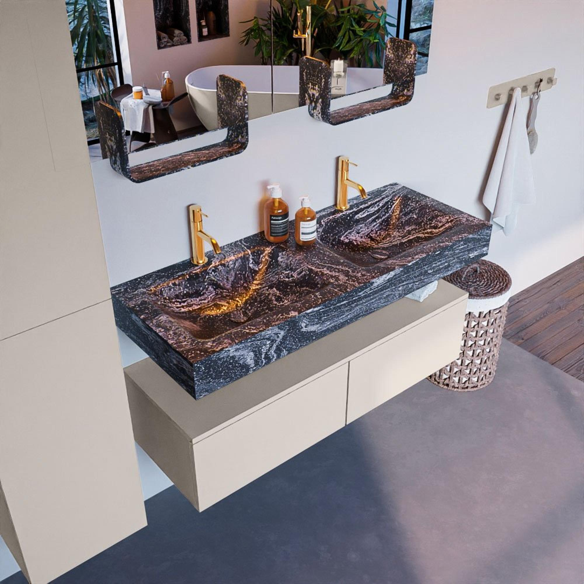 - Vrijhangende wastafel met 2 wasbakken